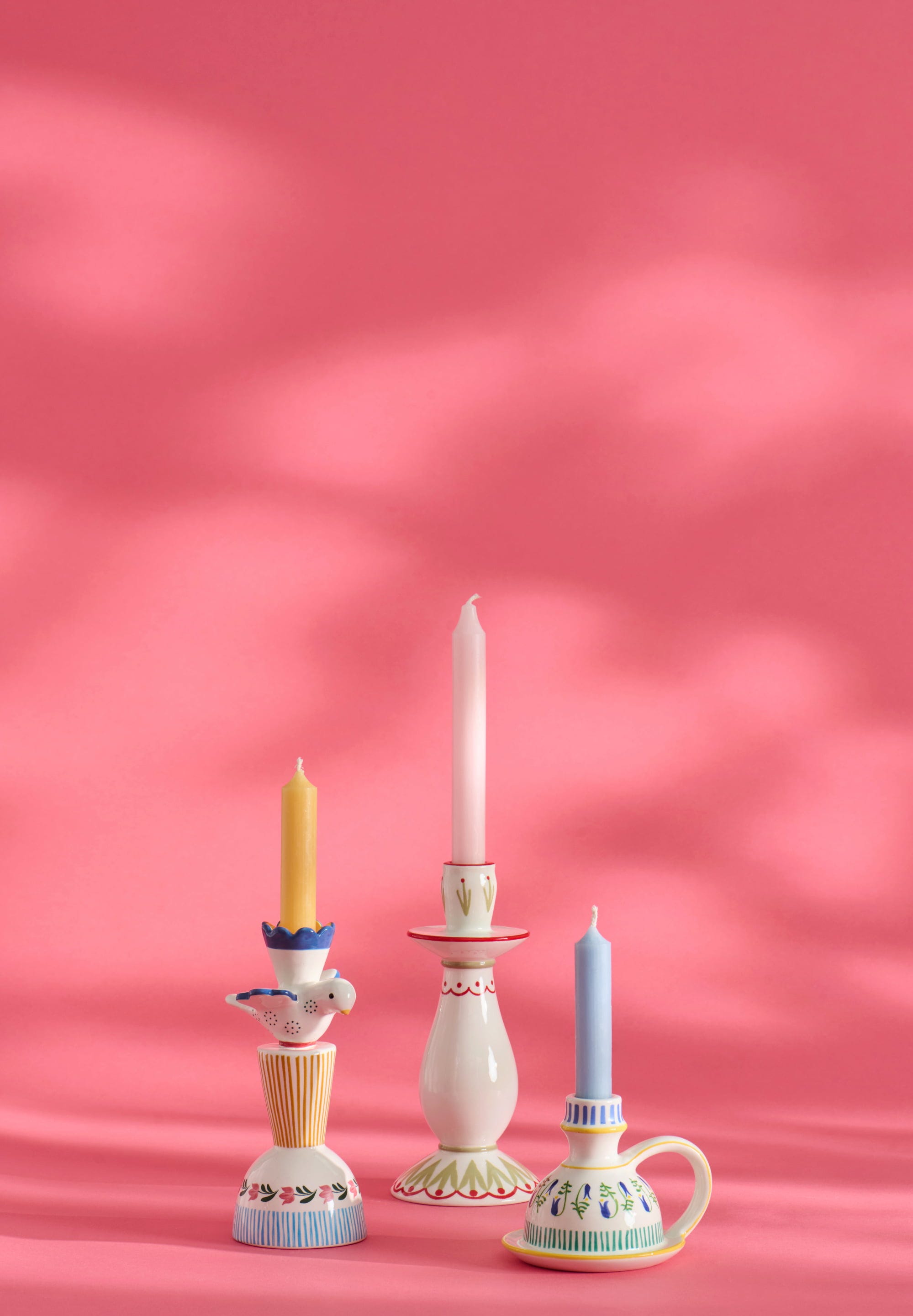 Dieser farbenfrohe Kerzenhalter begeistert mit seinem verspielt-charmanten Design und ist mit diesem ein ganz besonderer Hingucker auf Sideboards und Tischen.