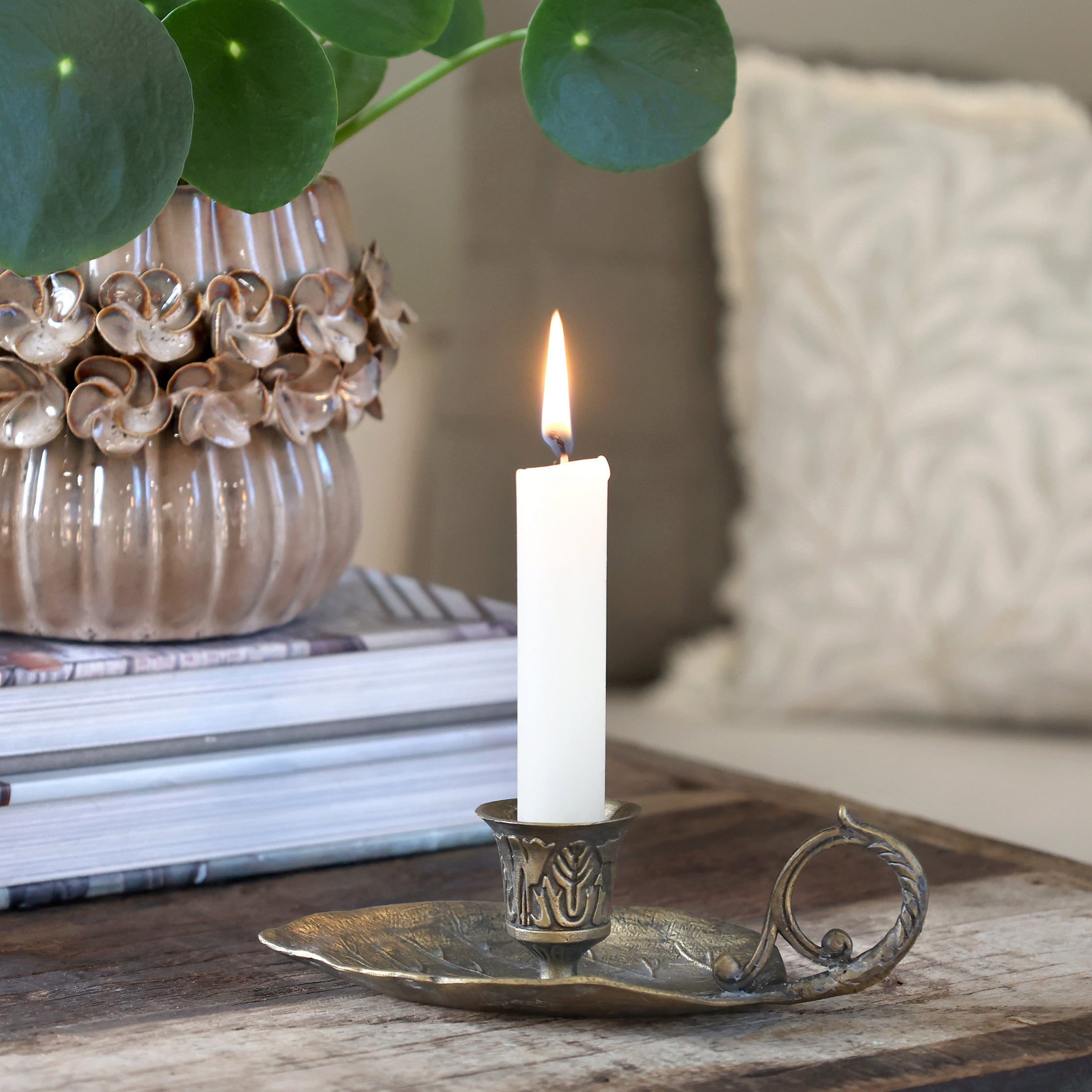 Dieser filigrane Kammerleuchter mit Blattmotiv sorgt für eine gemütliche Atmosphäre und setzt Kerzenlichter stilvoll in Szene – perfekt für stimmungsvolle Abende oder als dekoratives Highlight auf dem Tisch.