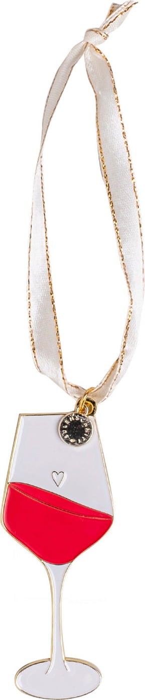 Bringe festliche Gemütlichkeit an deinen Weihnachtsbaum mit dem liebevoll designten Baumanhänger in Form eines Weinglases. Das rote Weinglas besticht durch charmante weiße und goldene Details und sorgt für einen besonderen Hingucker in deiner Weihnachtsdeko. Dank des bereits befestigten Bändchens lässt sich der Anhänger sofort aufhängen.