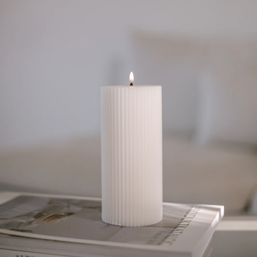 Eulenschnitt Blockkerze Rillen Groß, Weiß