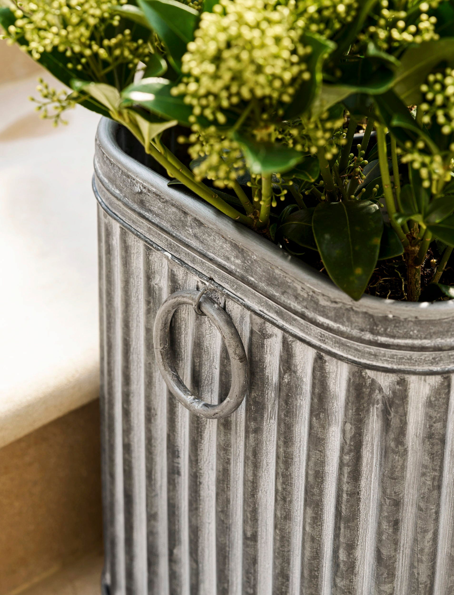 Achtung! Die seitlichen Griffe dienen nur zur Dekoration - bitte das Pflanzgefäß nicht daran hochheben!