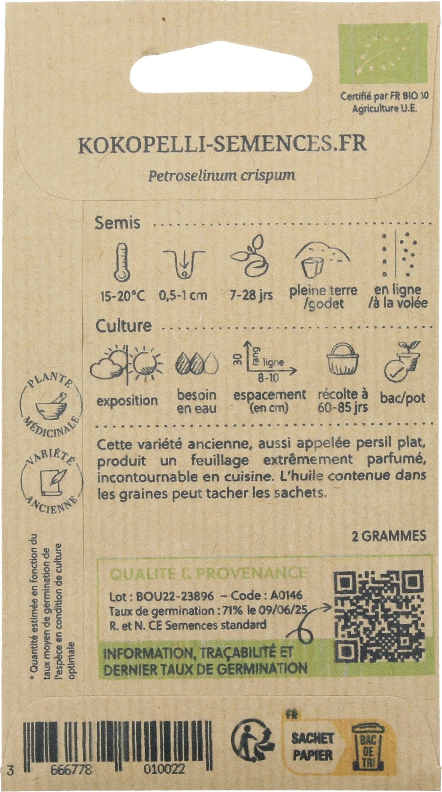 Kokopelli Bio Glatte Petersilie, 2 g