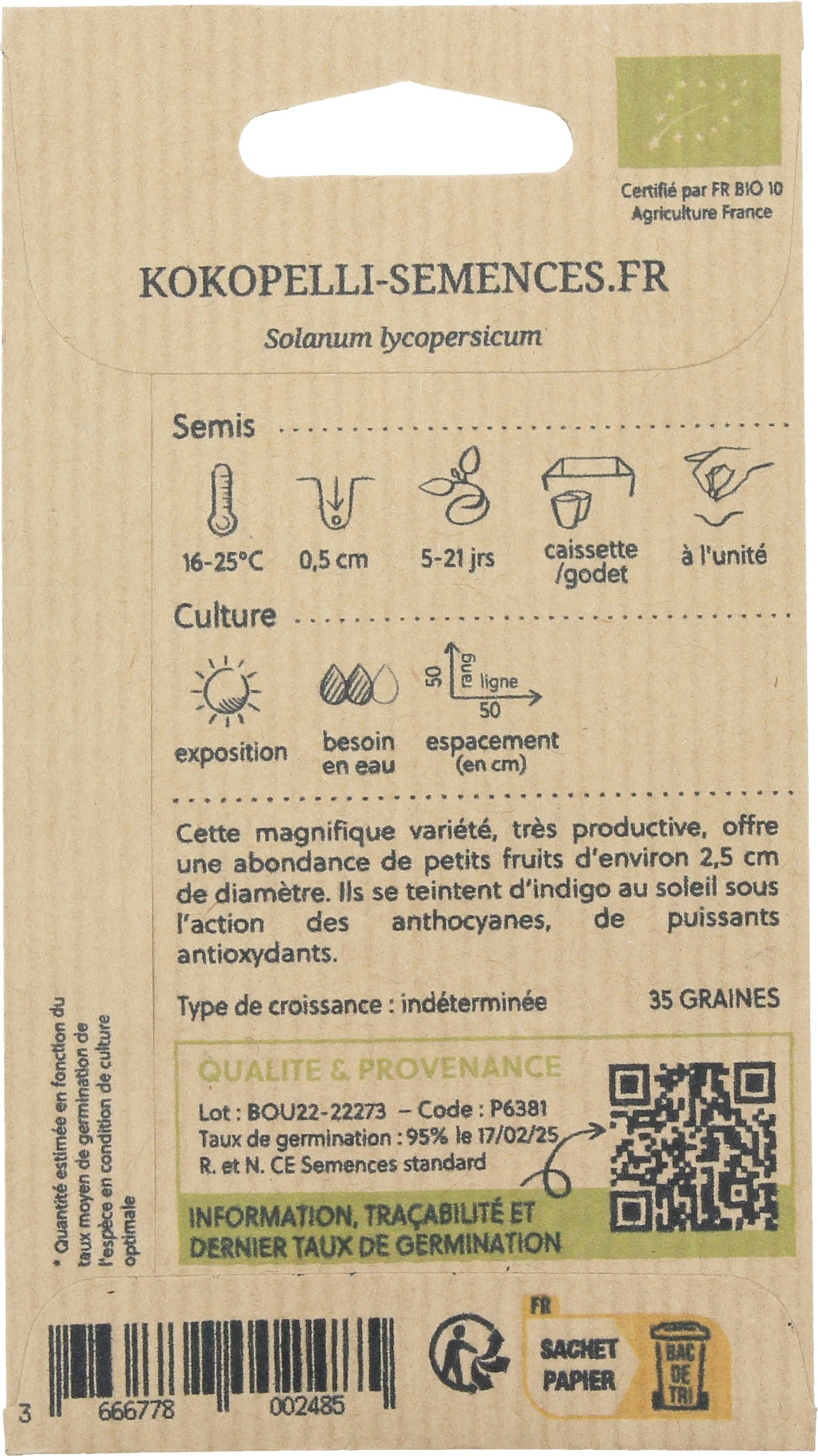 Kokopelli Bio Indigo-Kirschtomate „Fahrenheit Blues“, 35 Korn
