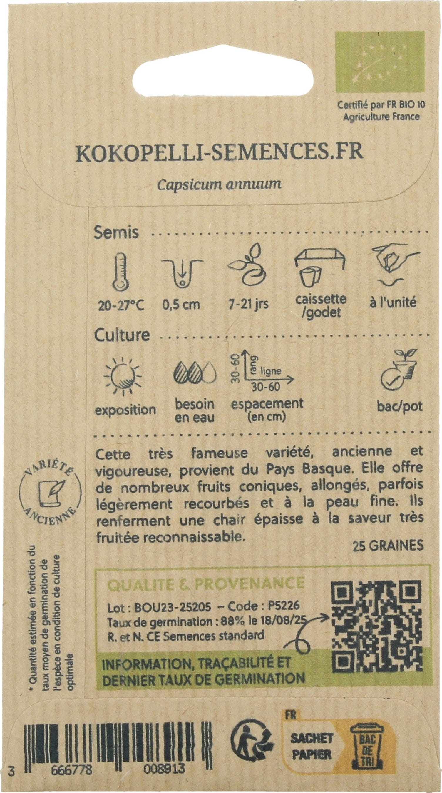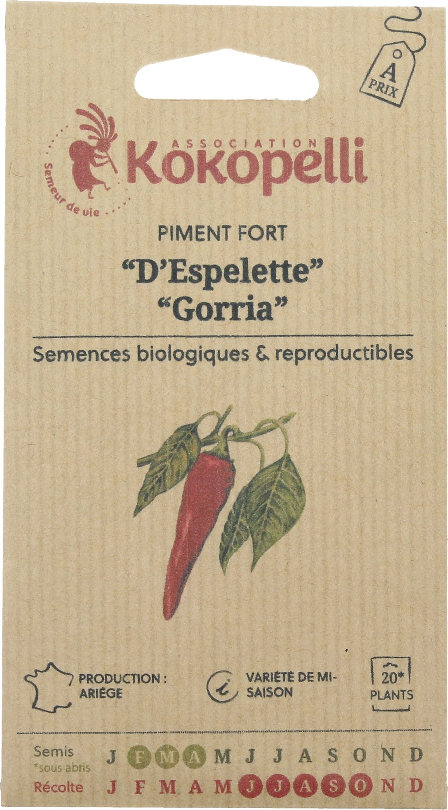 Kokopelli Bio Scharfe Paprika „D'Espelette / Gorria“, 25 Korn