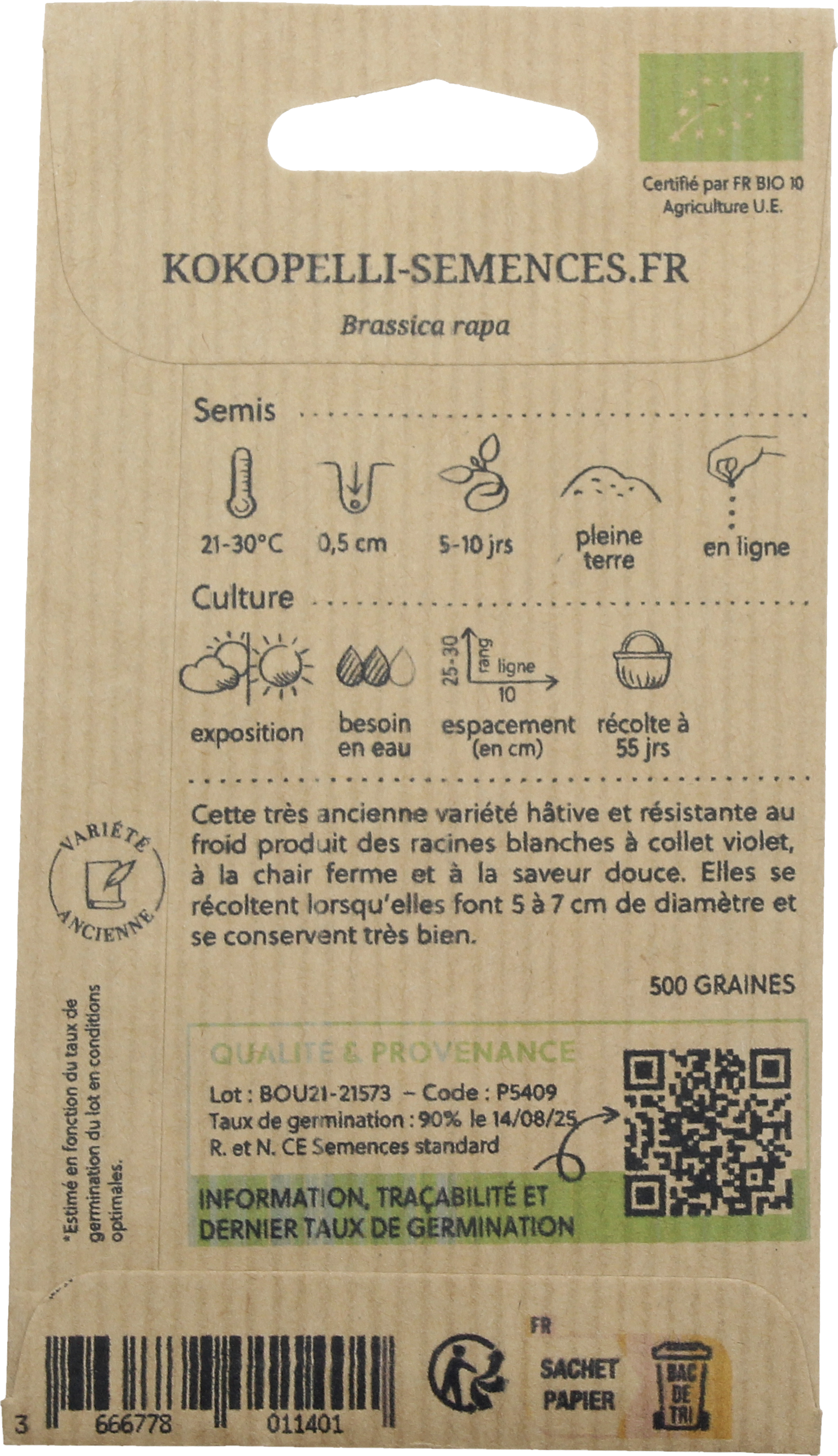 Kokopelli Bio Weiße Rübe „Globe“, 500 Korn