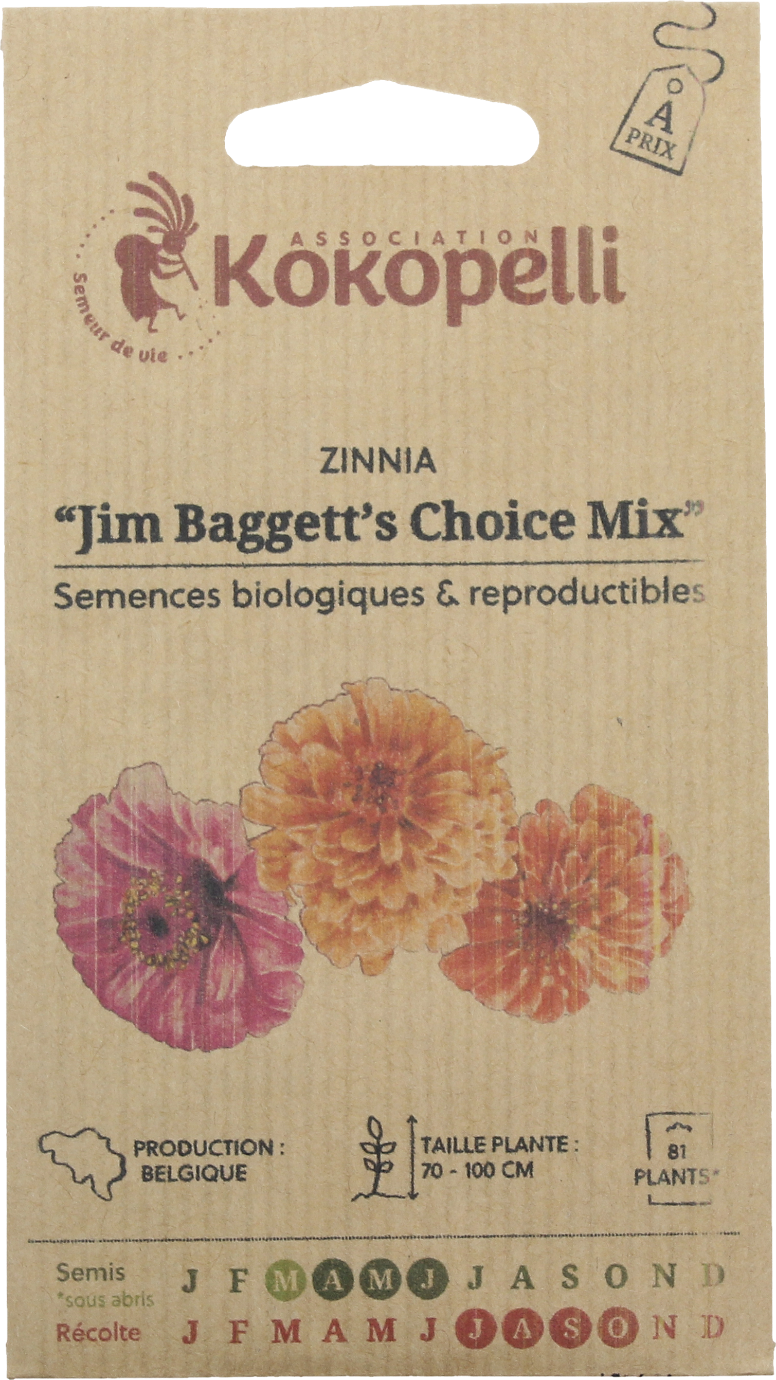 Kokopelli Bio Zinnie "Jim Baggett’s Choice Mix", 100 Korn