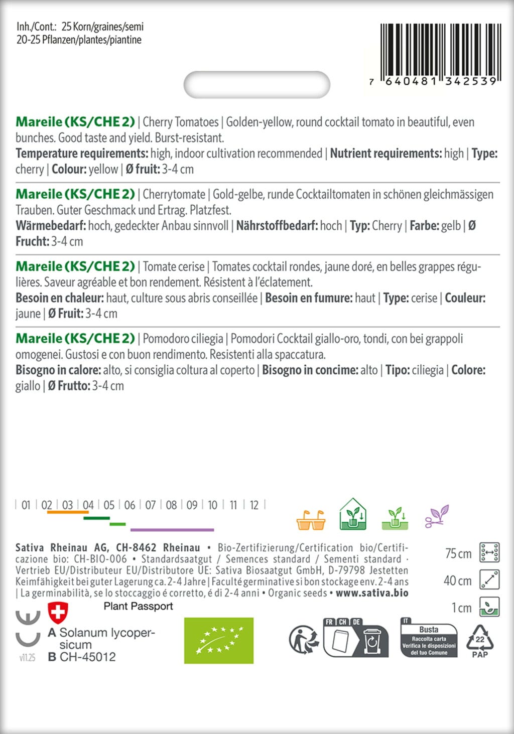 | Hersteller: | Sativa Biosaatgut GmbH, Keltenweg 4, 79798 , Jestetten, Österreich, sativa@sativa.bio, www.sativa.bio |