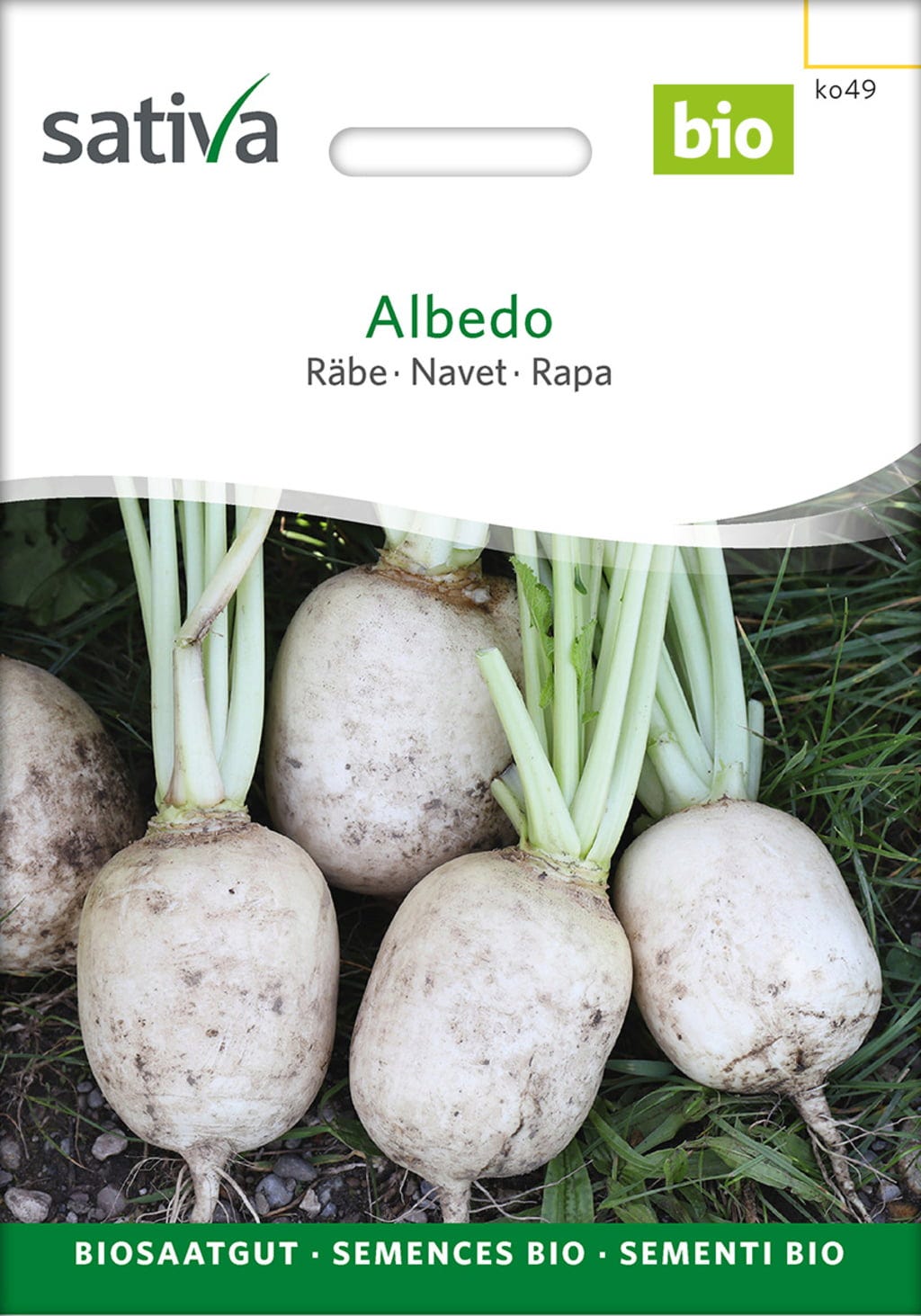 Die weisse Räbe Albedo eignet sich ideal für den Anbau im Frühjahr und Herbst und überzeugt durch ihre gleichmässige, hochrunde bis zylindrische Form. Sie liefert einen guten, einheitlichen Knollenertrag und schmeckt angenehm mild-süss. Besonders gut eignet sie sich für die Herstellung von Sauerrübe und stammt als ProSpecieRara-Sorte aus sorgfältiger Erhaltungsarbeit von Sativa.