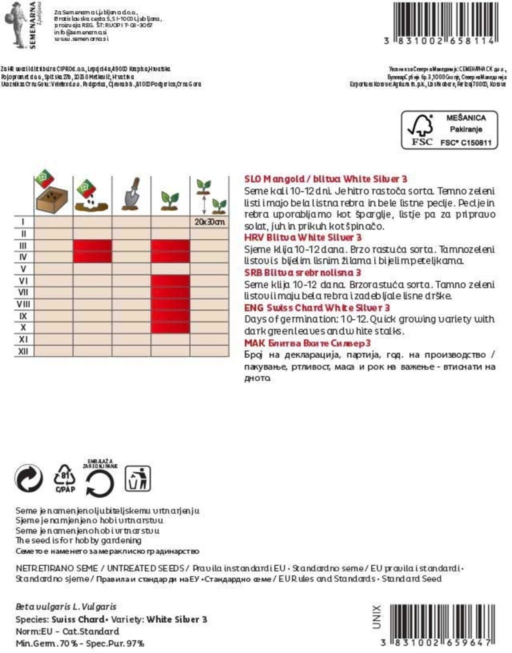 Semenarna Ljubljana Mangoldsamen "White Silver 3", 8 g