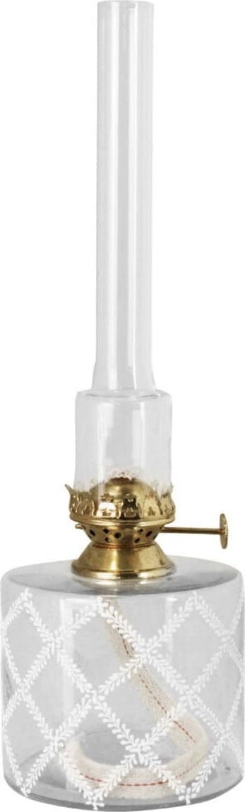 Die Petroleumlampe Luna verströmt nostalgischen Charme und fügt sich gleichzeitig harmonisch in moderne Einrichtungen ein. Der runde Glaskörper mit handbemaltem Muster und der Messingbrenner machen sie zu einem dekorativen Highlight.