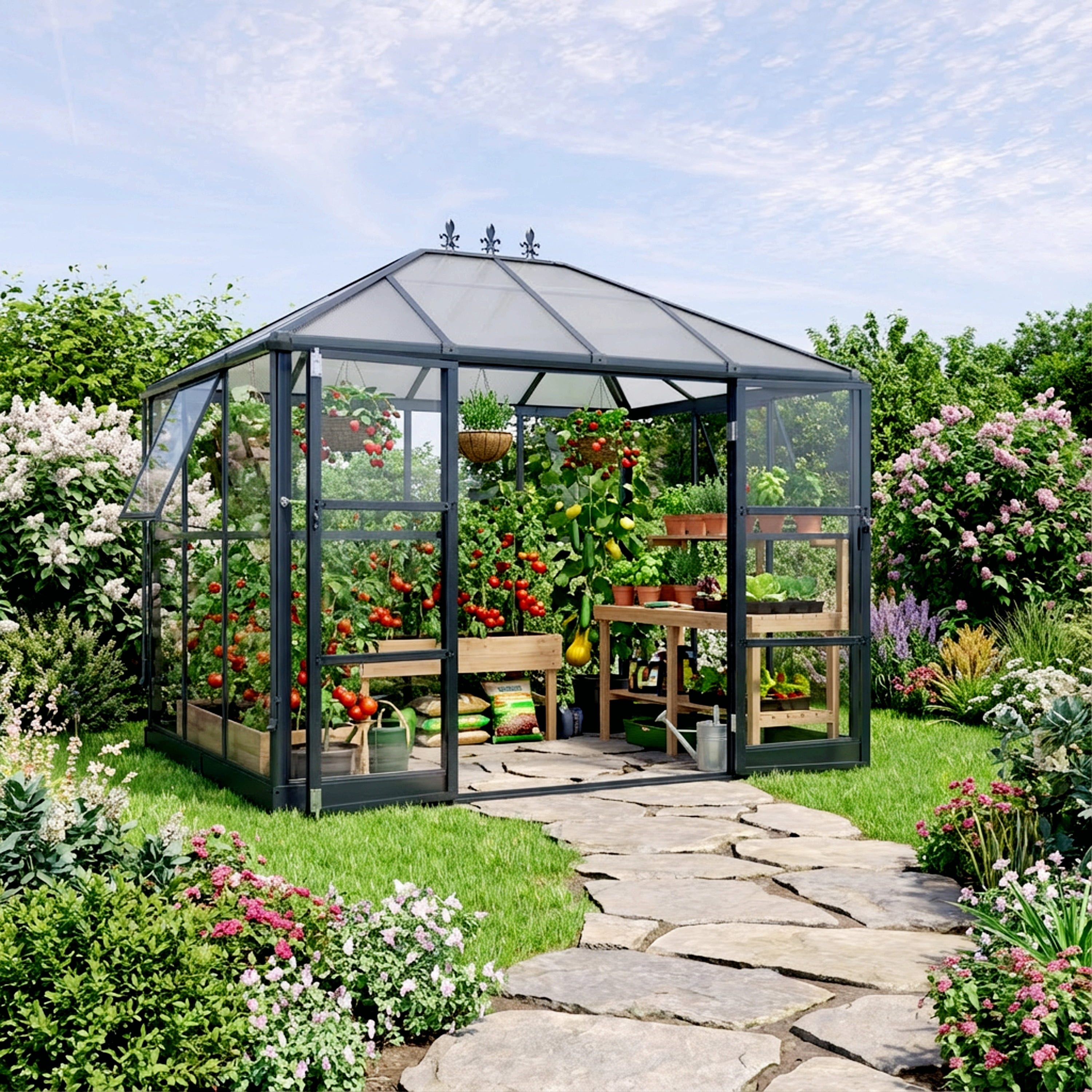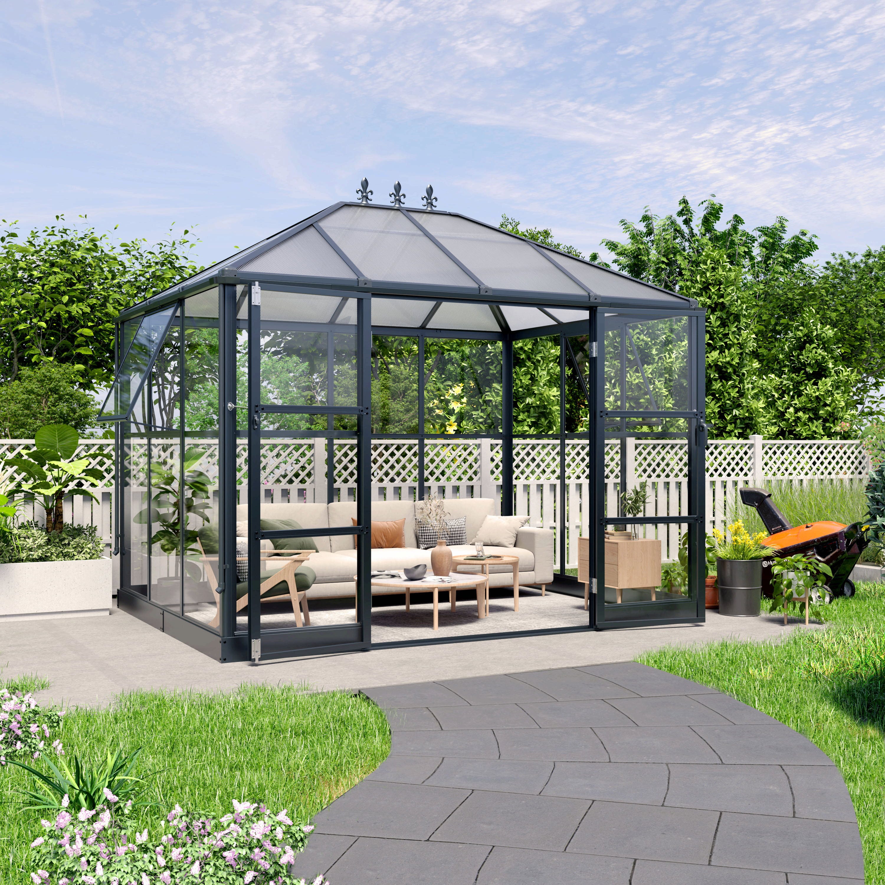 - Mit Polycarbonatverglasung & Doppelstegplatten
