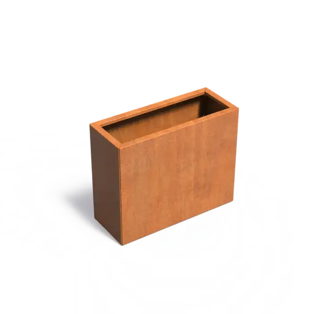 Remarque : Le bac est livré à l’état brut, sans patine. Celle-ci se forme naturellement sous 4 à 5 mois, selon les conditions climatiques et l’emplacement. Pour accélérer le processus, il est possible d’appliquer un activateur de rouille.