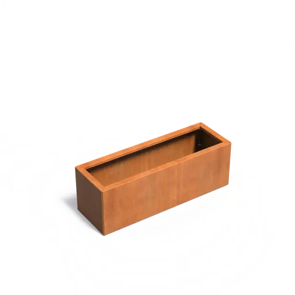 Remarque : Le bac est livré à l’état brut, sans patine. Celle-ci se forme naturellement sous 4 à 5 mois, selon les conditions climatiques et l’emplacement. Pour accélérer le processus, il est possible d’appliquer un activateur de rouille.