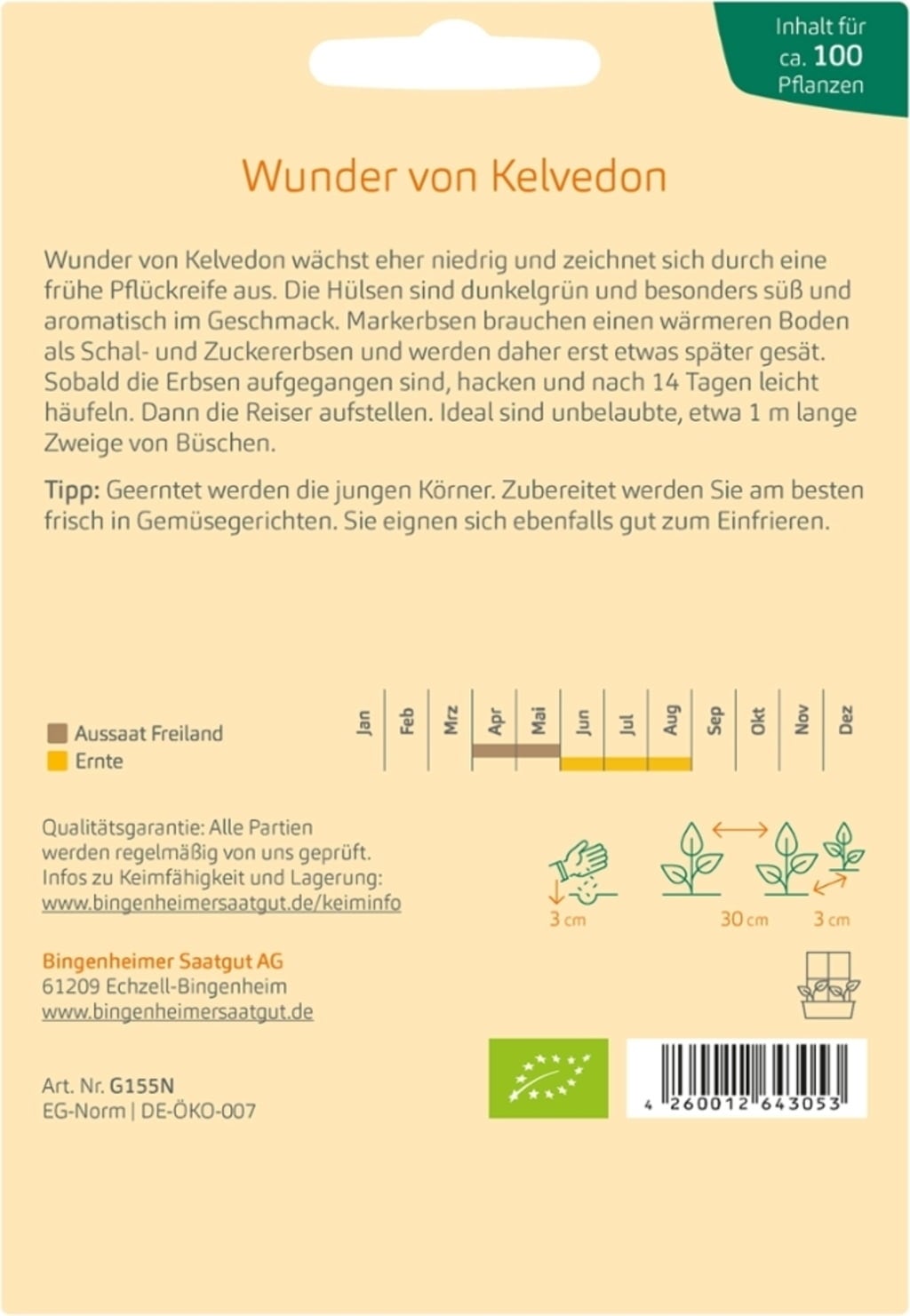 Bingenheimer Saatgut Pois "Merveille de Kelvedon"