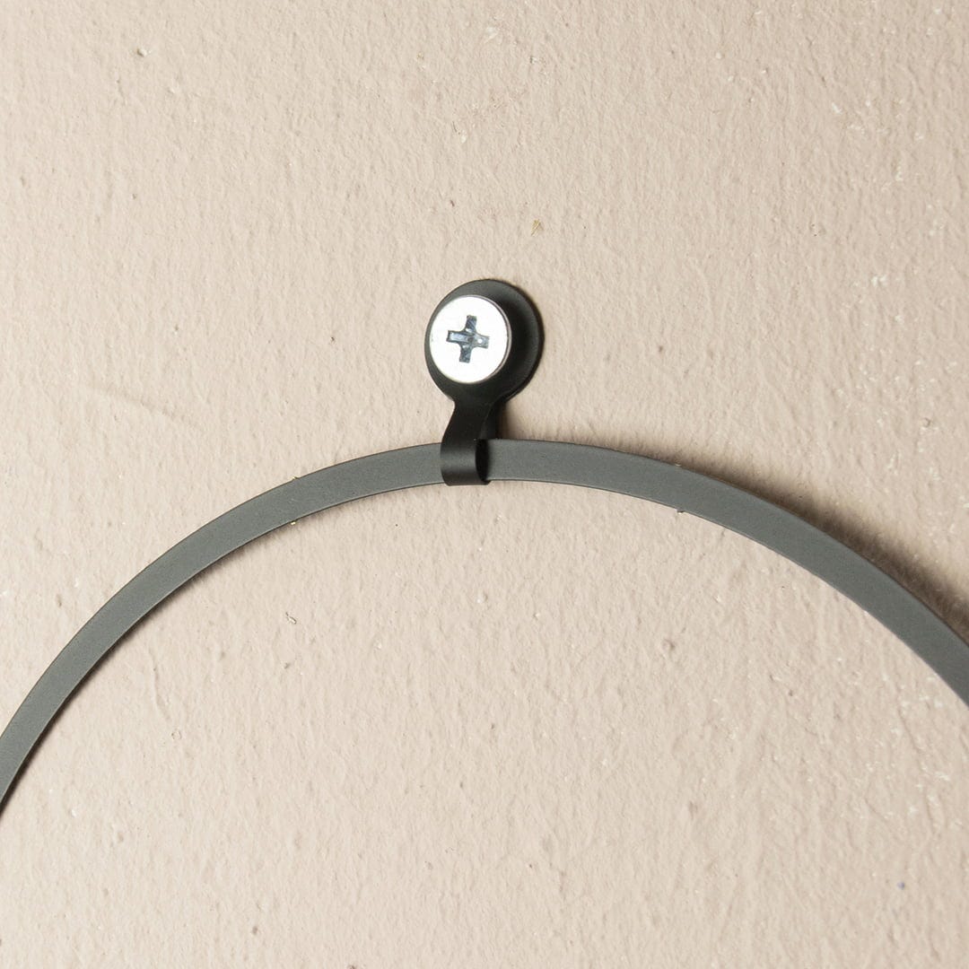 - Accrocher au mur avec un clou, une vis ou une punaise