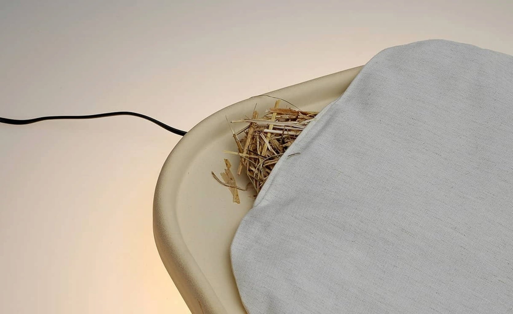 Contenu : poêle en céramique, câble secteur de 2 m, coussin rempli de paille