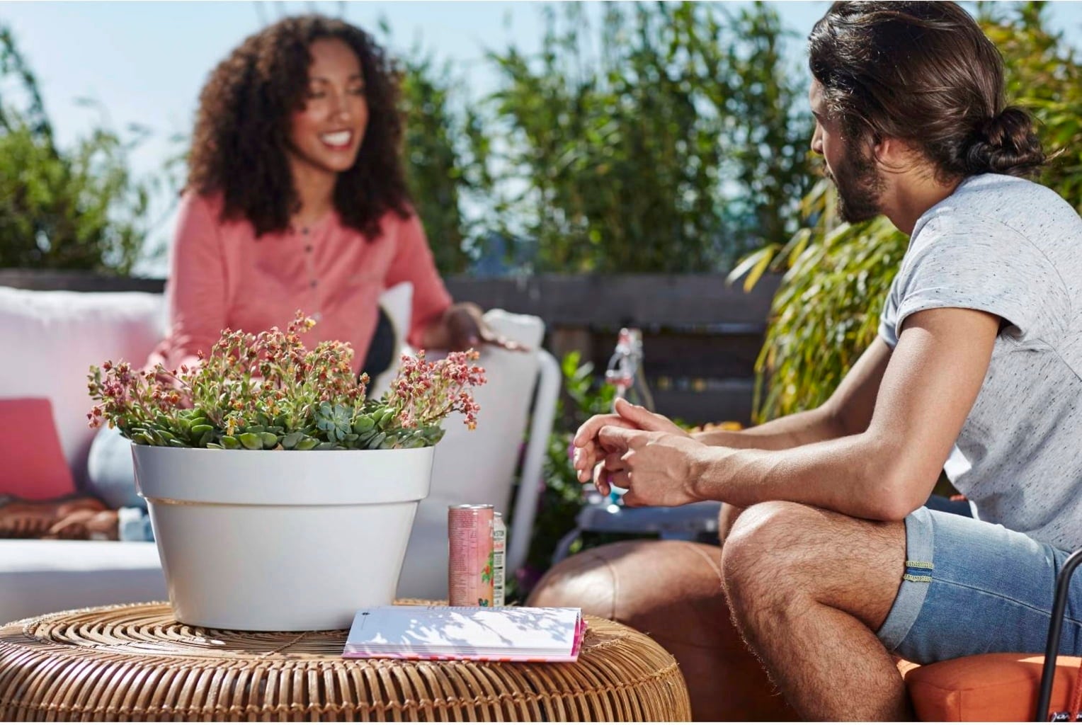 Avec ses lignes élancées et ses couleurs fraîches, ce large pot attire le regard aussi bien sur votre table de jardin que sur une terrasse en ville. Son système d’irrigation intégré a été ingénieusement conçu : il permet à la plante de stocker l'excès d'eau pour s'en servir plus tard, tout en évacuant l’excédent d’eau grâce à un conduit spécial. Vos plantes ne restent ainsi jamais les racines dans l’eau, et vous profitez de plus de sérénité au quotidien.
