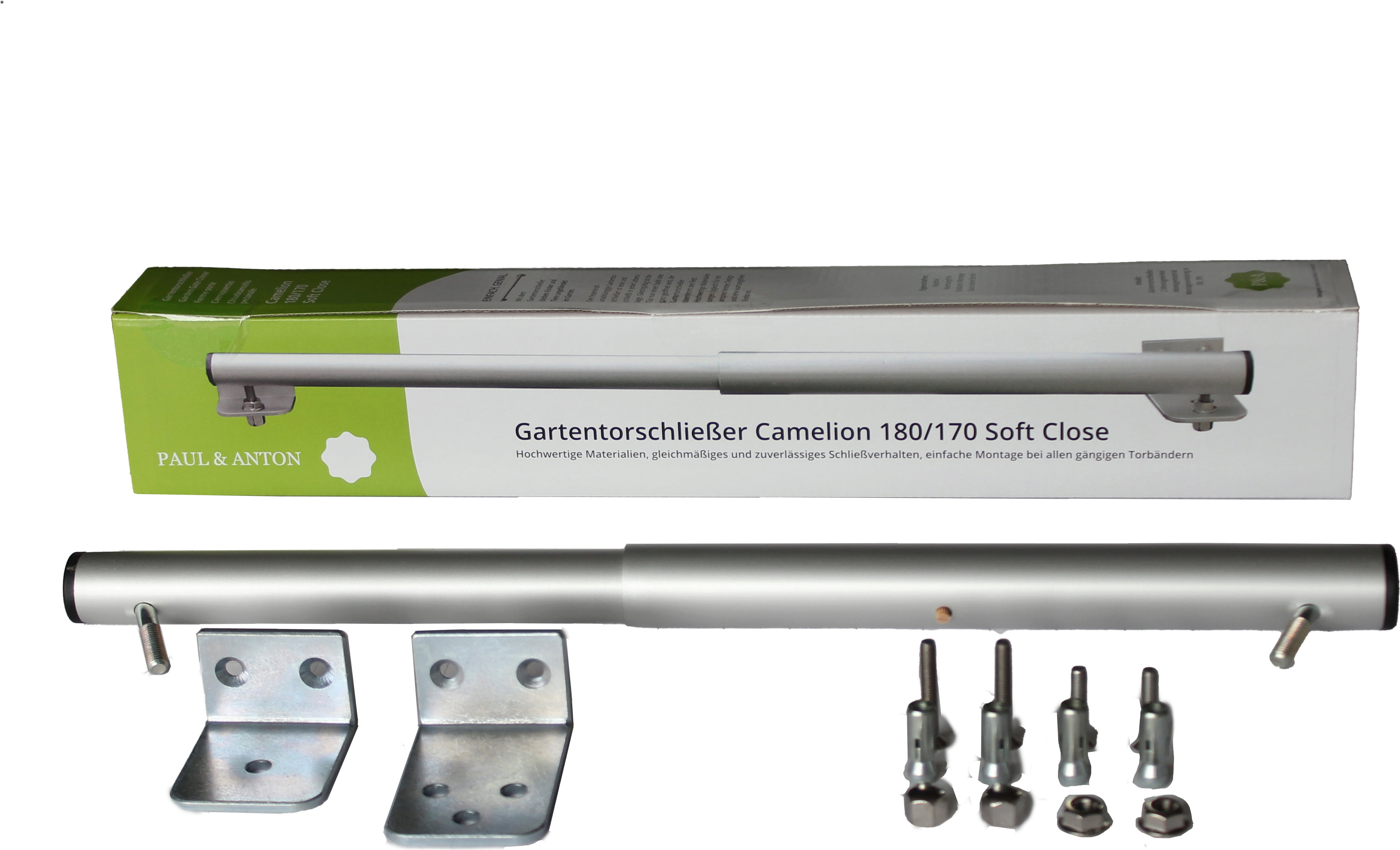 Gartentorschliesser Ferme-Portail Camelion 180/170 Soft Close, Argenté, Angle de 80