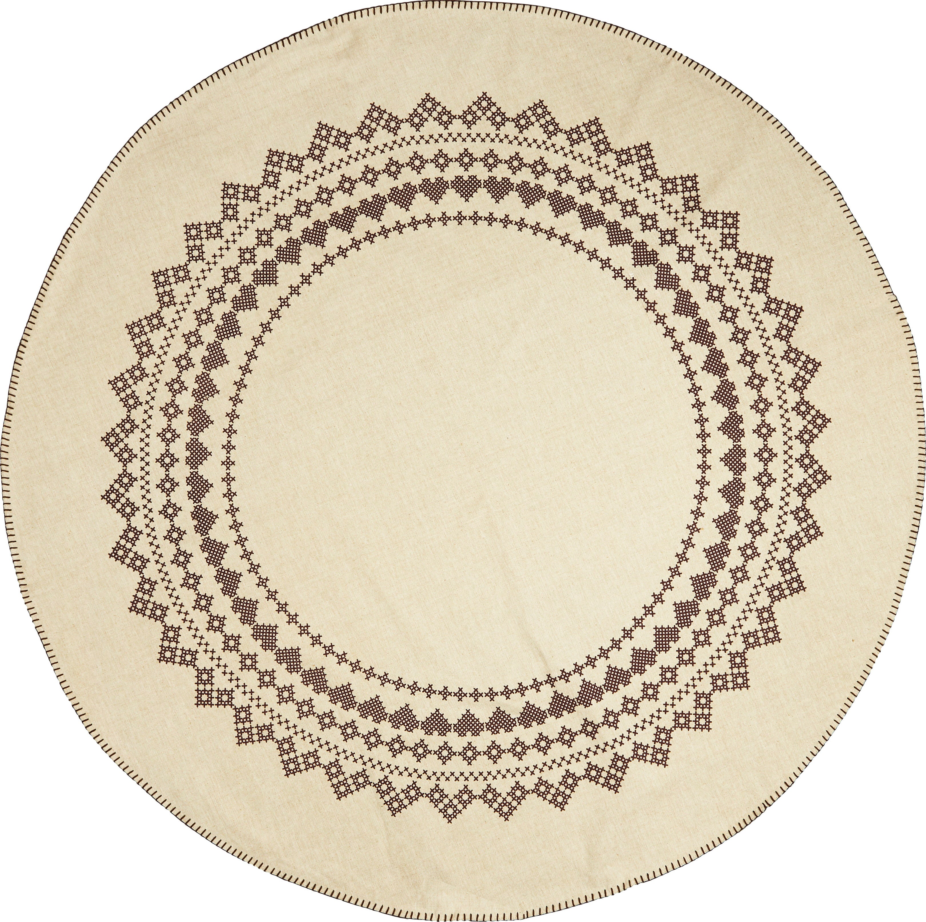 Ce tapis pour sapin de Noël séduit par son style rétro et sa broderie raffinée. Il s'accorde à merveille avec des décorations naturelles et protège le sol de la chute des aiguilles.