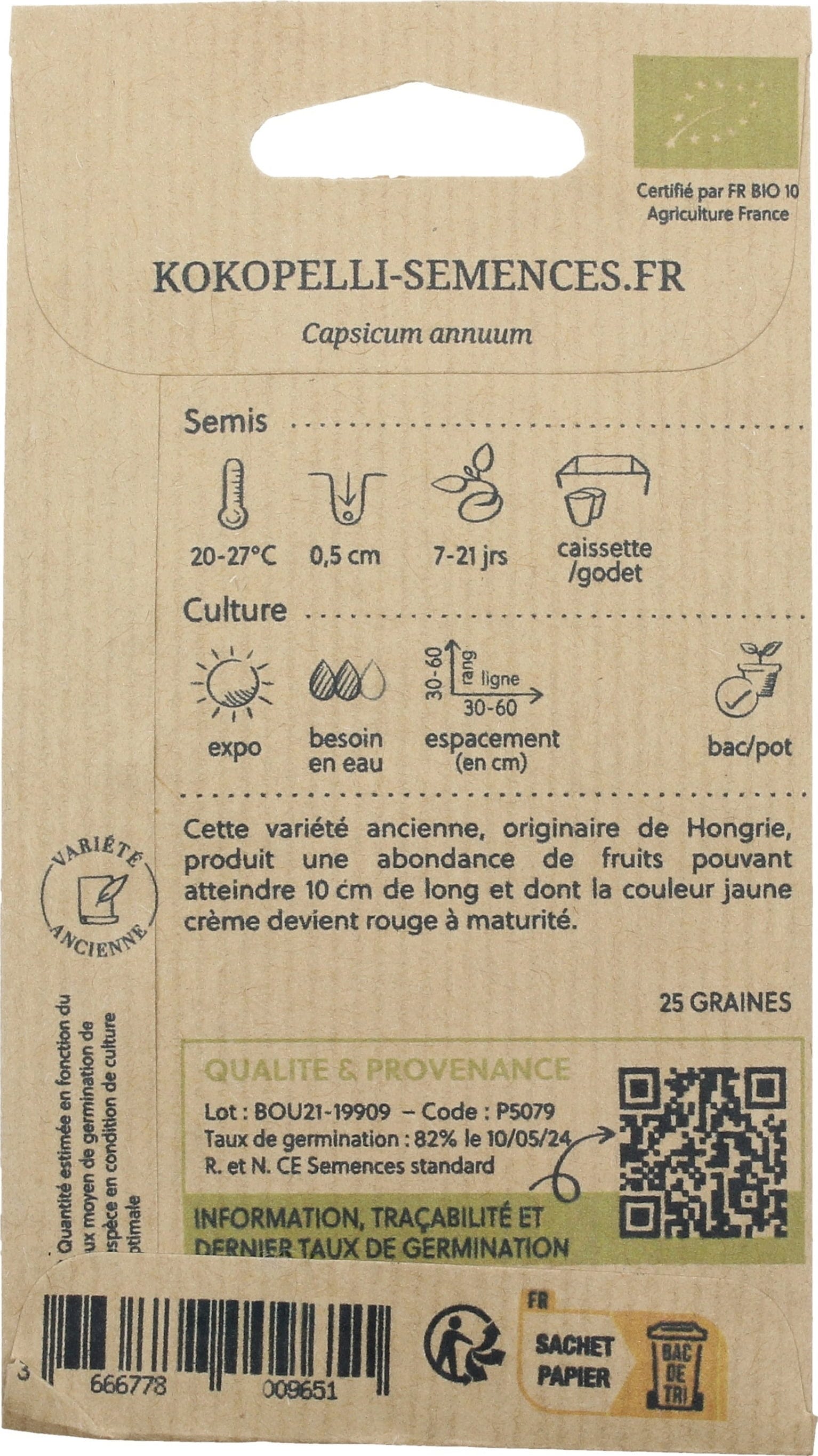 | Fabricant: | Association Kokopelli, 7 Route de Sabarat, Foret de Castagnes, 09290, Le Mas D'Azil, France, professionnels@kokopelli-semences.fr, www.kokopelli-semences.fr |