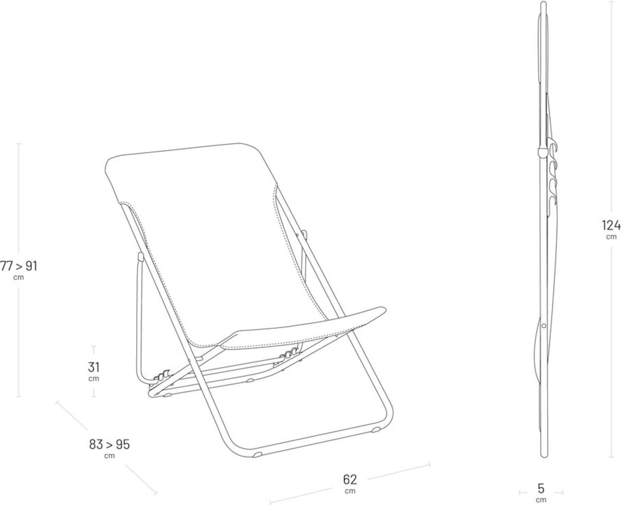 D’un simple geste, vous choisissez parmi quatre positions d’inclinaison : lecture, sieste ou relaxation totale. Léger et peu encombrant une fois plié, ce transat vous suit facilement et se range en un clin d’œil. Les patins intégrés protègent les surfaces délicates, tandis que la toile amovible vous laisse la liberté de faire évoluer le style de votre espace détente à tout moment.