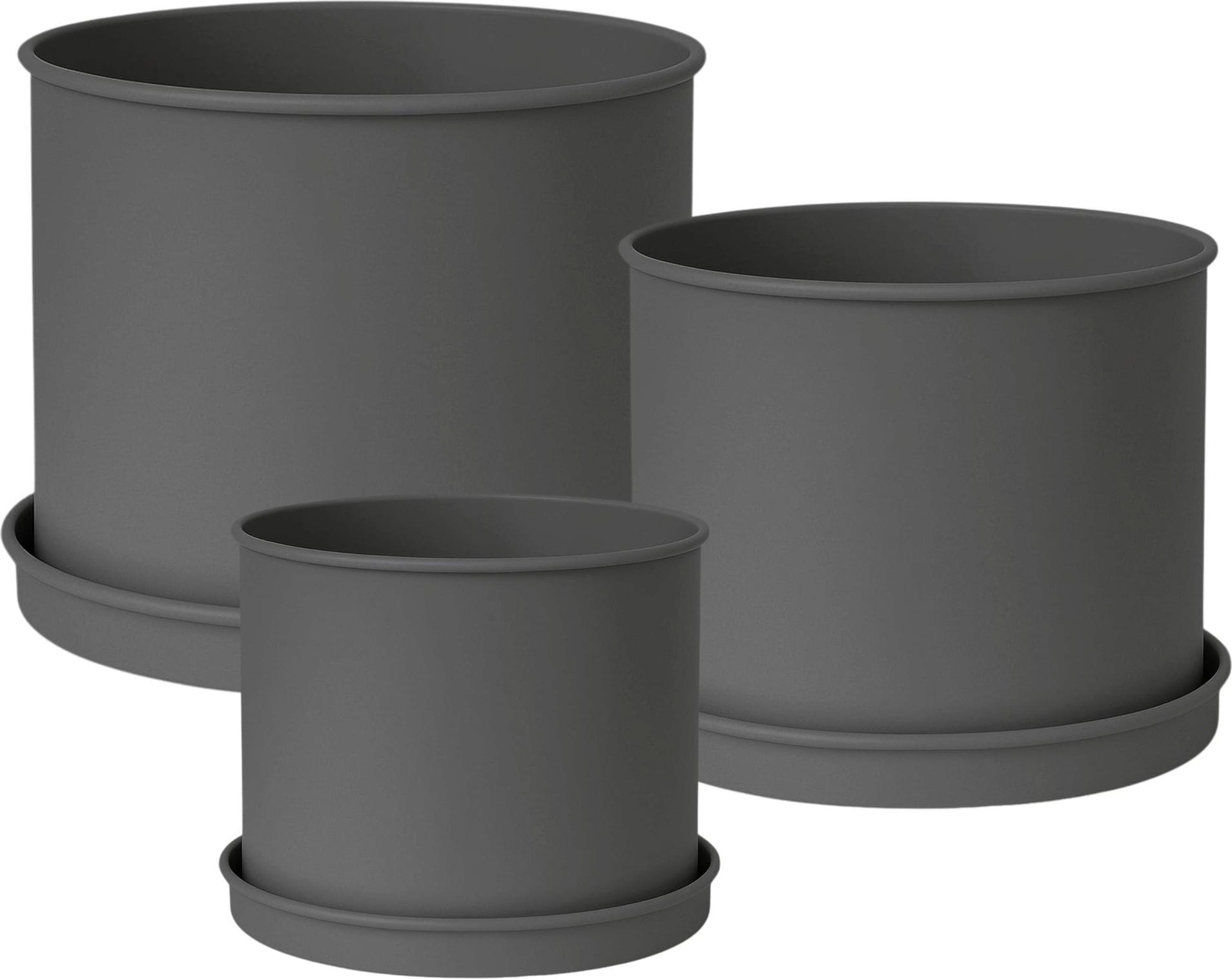 Livlig Lot de 3 Pots de Fleurs en Métal avec Soucoupes, anthracite