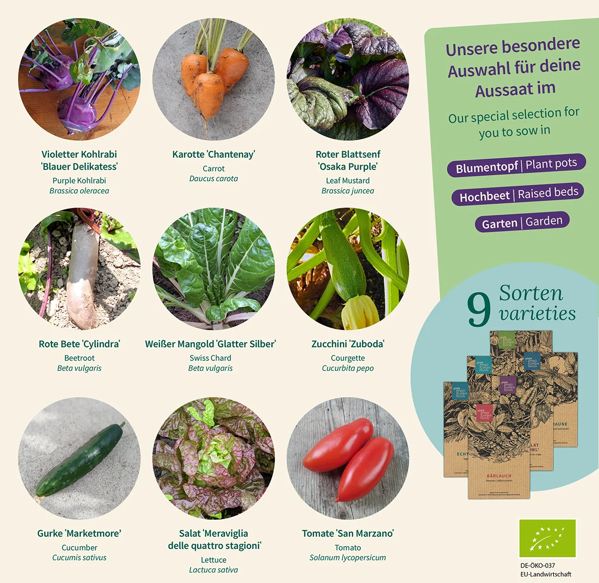 - 9 variétés de graines bio différentes
