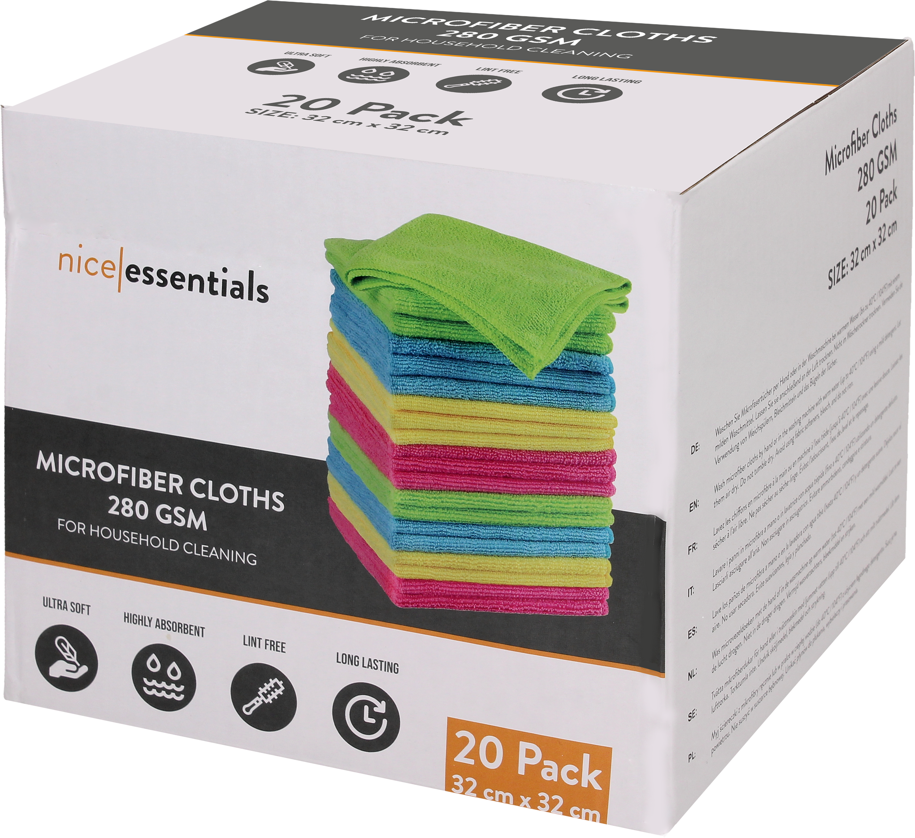 nice essentials Set de Chiffons de Nettoyage en Microfibre 32 x 32 cm, 20 pièces