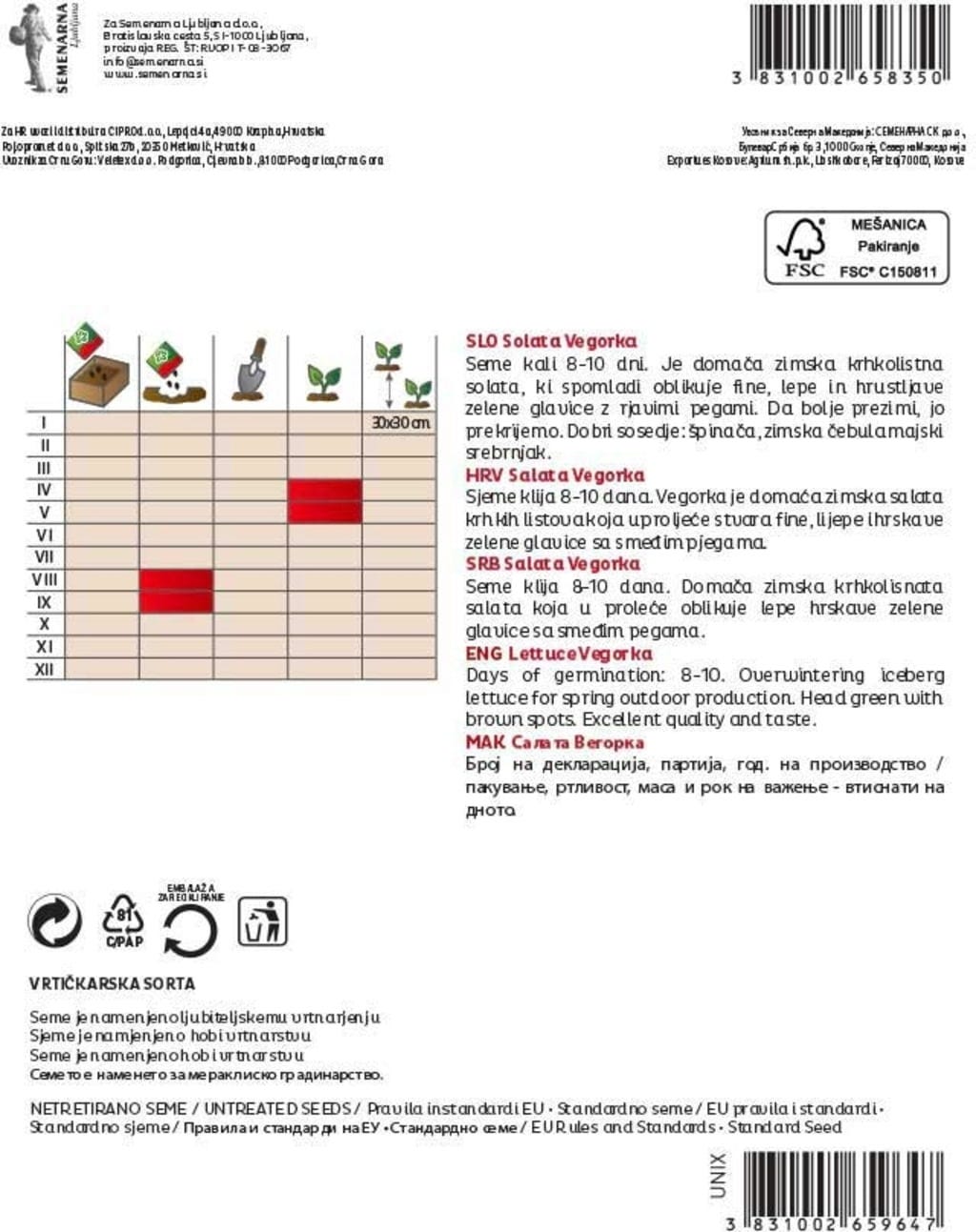 Semenarna Ljubljana Graines de Laitue Pommée "Vegorka", 5 g