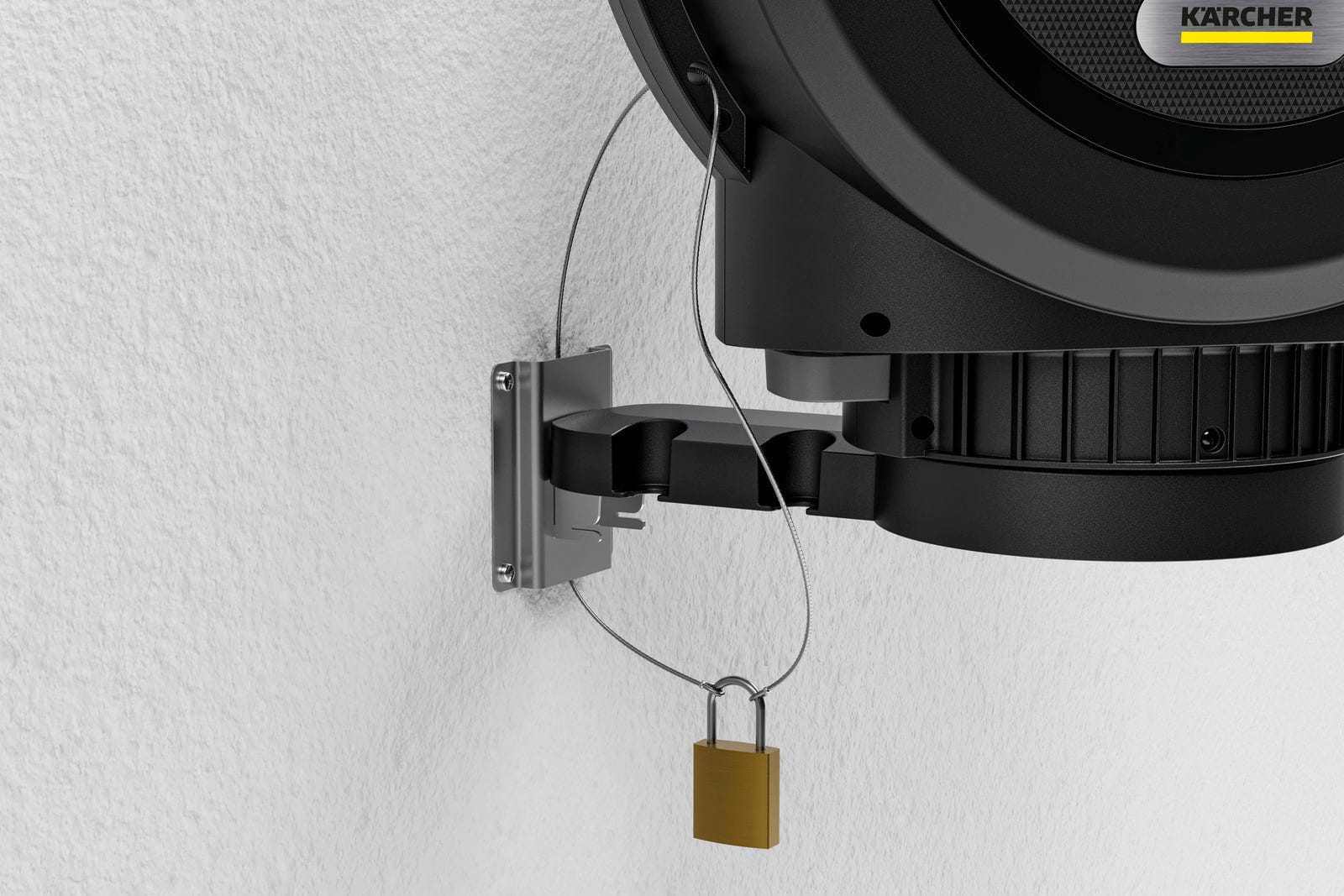 Le montage se fait au mur pour gagner de la place. Grâce au support mural pivotant, le dévidoir de tuyau peut être orienté de manière flexible afin d'atteindre différentes zones du jardin. Le tuyau se bloque automatiquement à de courts intervalles lors du déroulement, ce qui permet d'utiliser confortablement la longueur souhaitée.