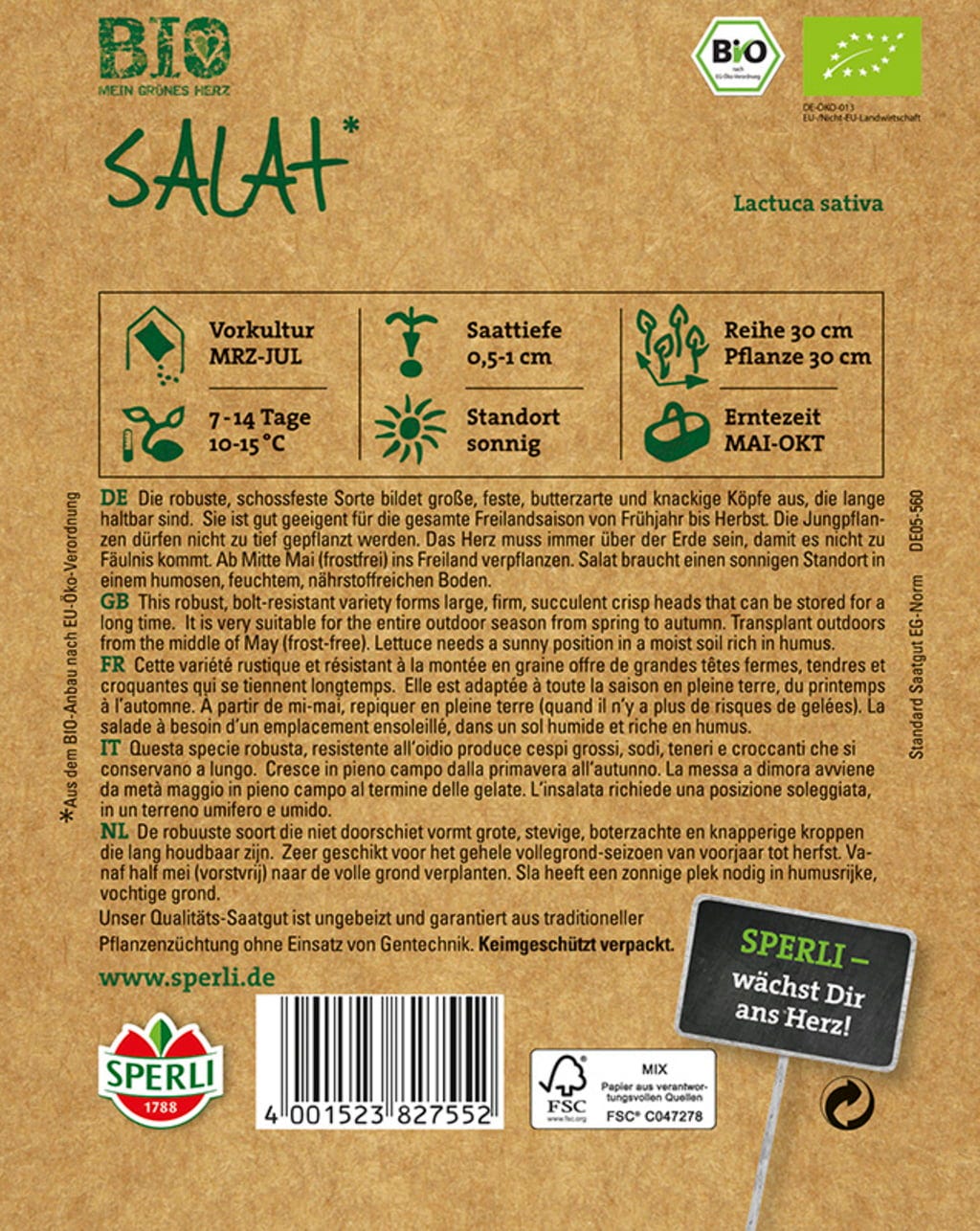 Sperli Laitue Pommée Bio