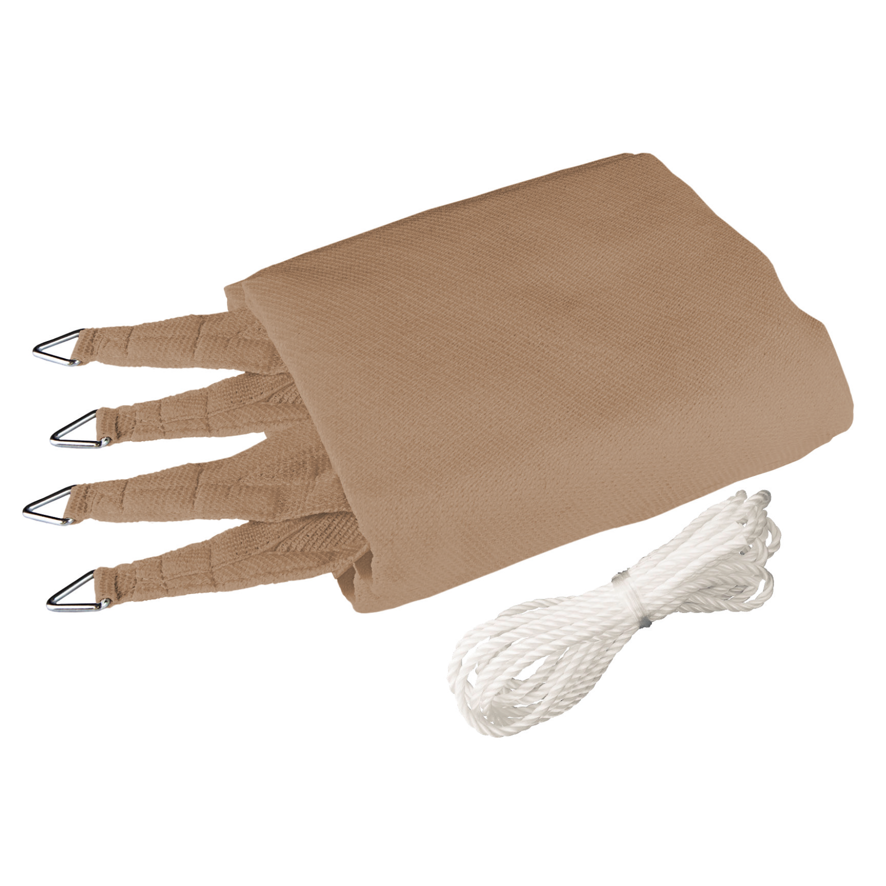 Ancrer à tous les coins à l'aide d'éléments d'ancrage tels que des mâts de voile d'ombrage, des œillets sur le mur, des boulons pour les poteaux, etc. La toile est accrochée dans l'élément d'ancrage à l'aide d'éléments de liaison (corde, manille en D, mousqueton, ancre de tension, câble d'extension, ressort de tension).