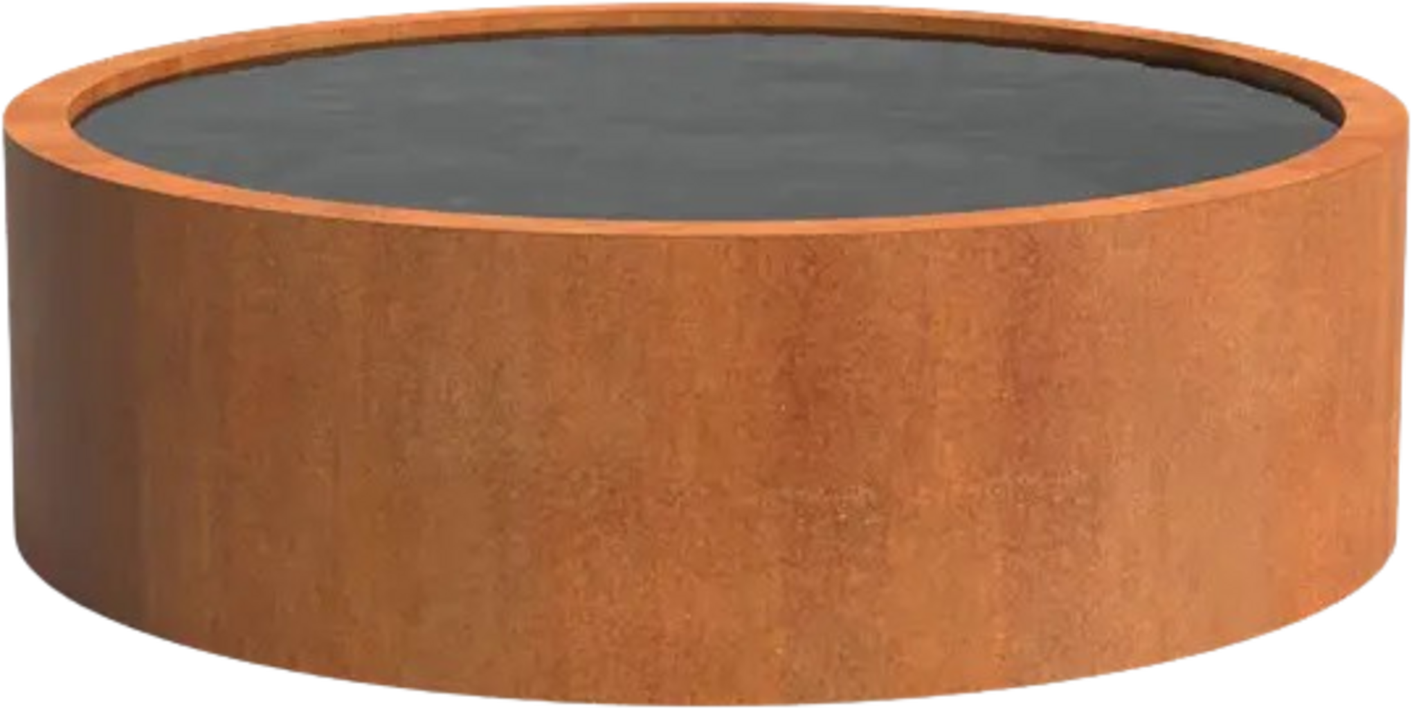 - Cortenstaal vormt een natuurlijke roestlaag die de vijver weerbestendig en duurzaam maakt