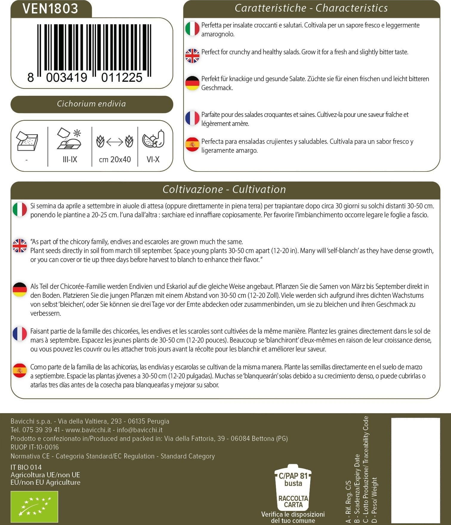 Bavicchi Biologische Andijvie "blond", 6 g