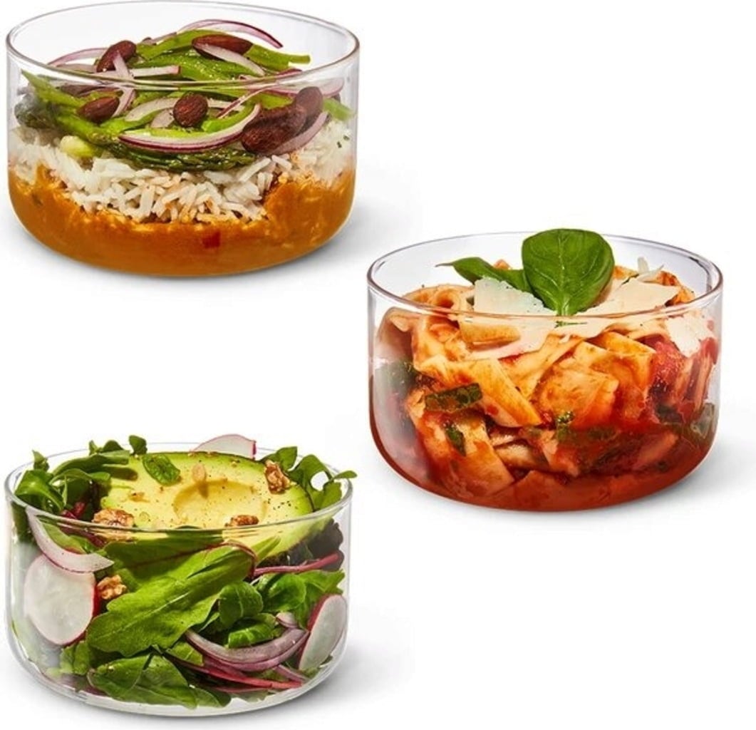 De schaal van borosilicaatglas is ook ovenbestendig. Let op: Vermijd plotselinge temperatuurschommelingen, want dan kan de kom breken.