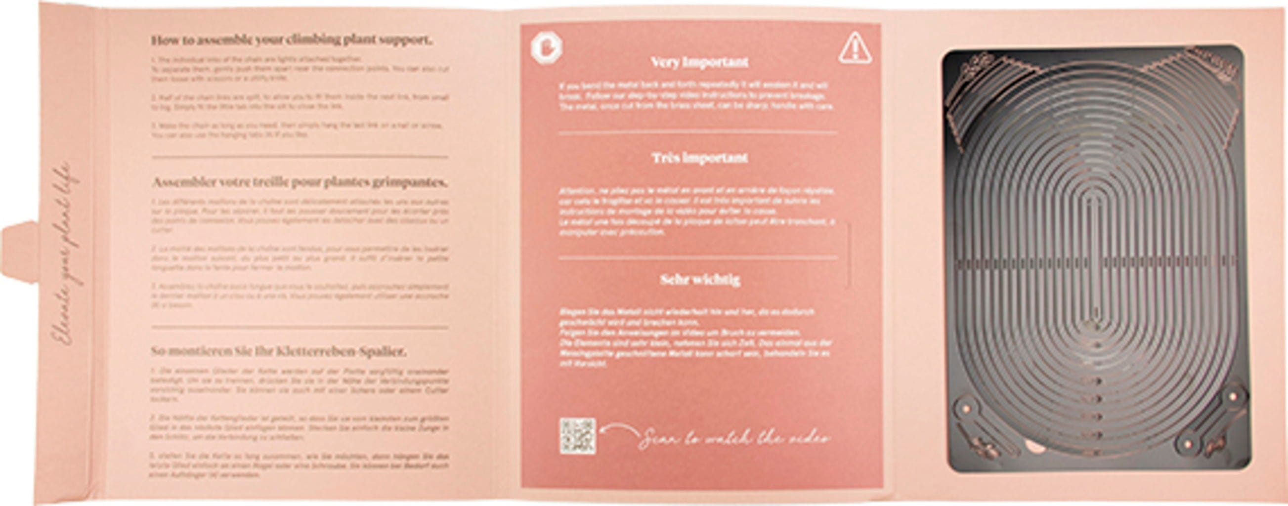 Door het modulaire ontwerp kun je verschillende klimsteunen combineren tot een lengte van 190 cm. De plantensteun wordt eenvoudig met een spijker aan de muur bevestigd.