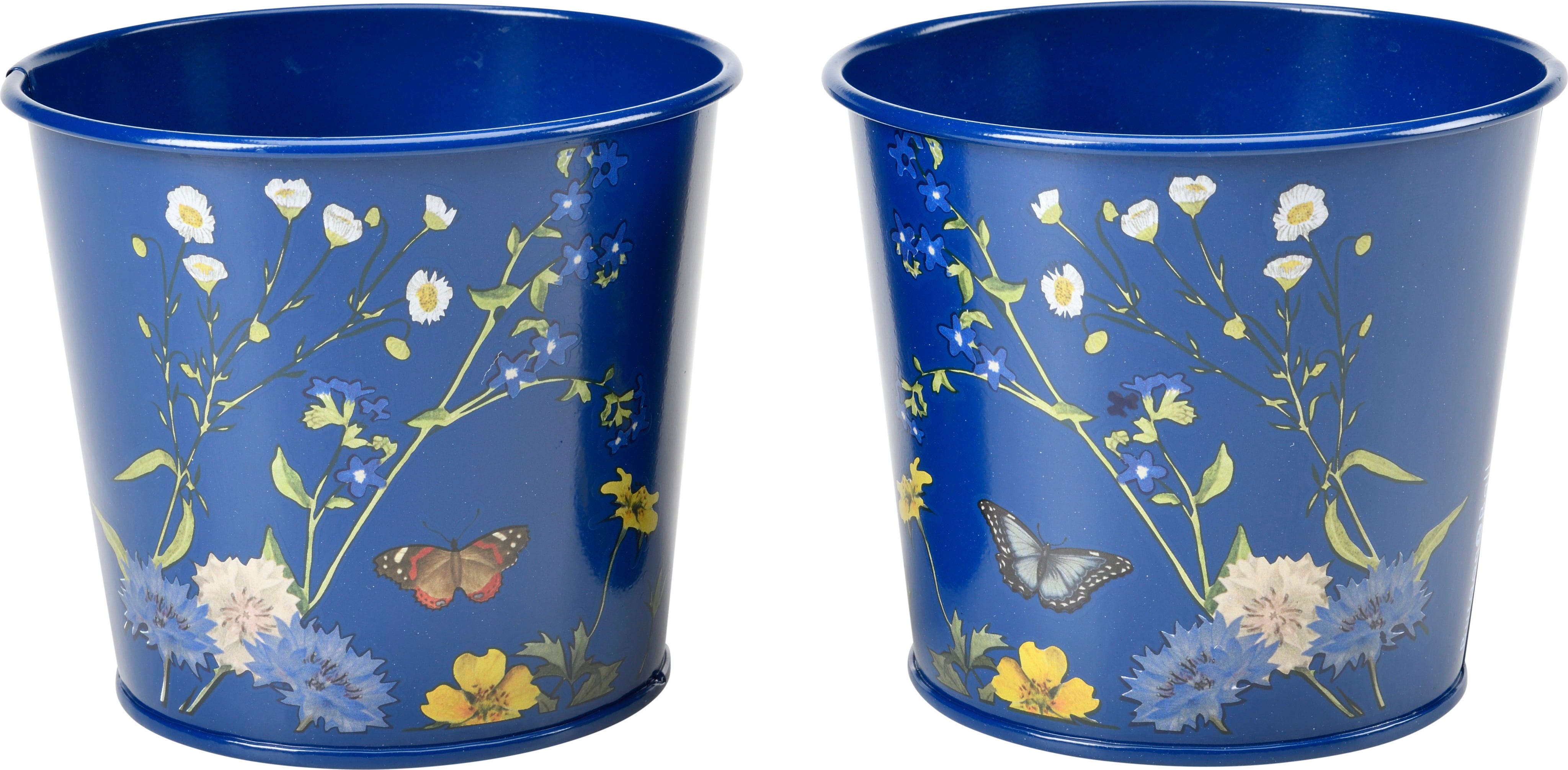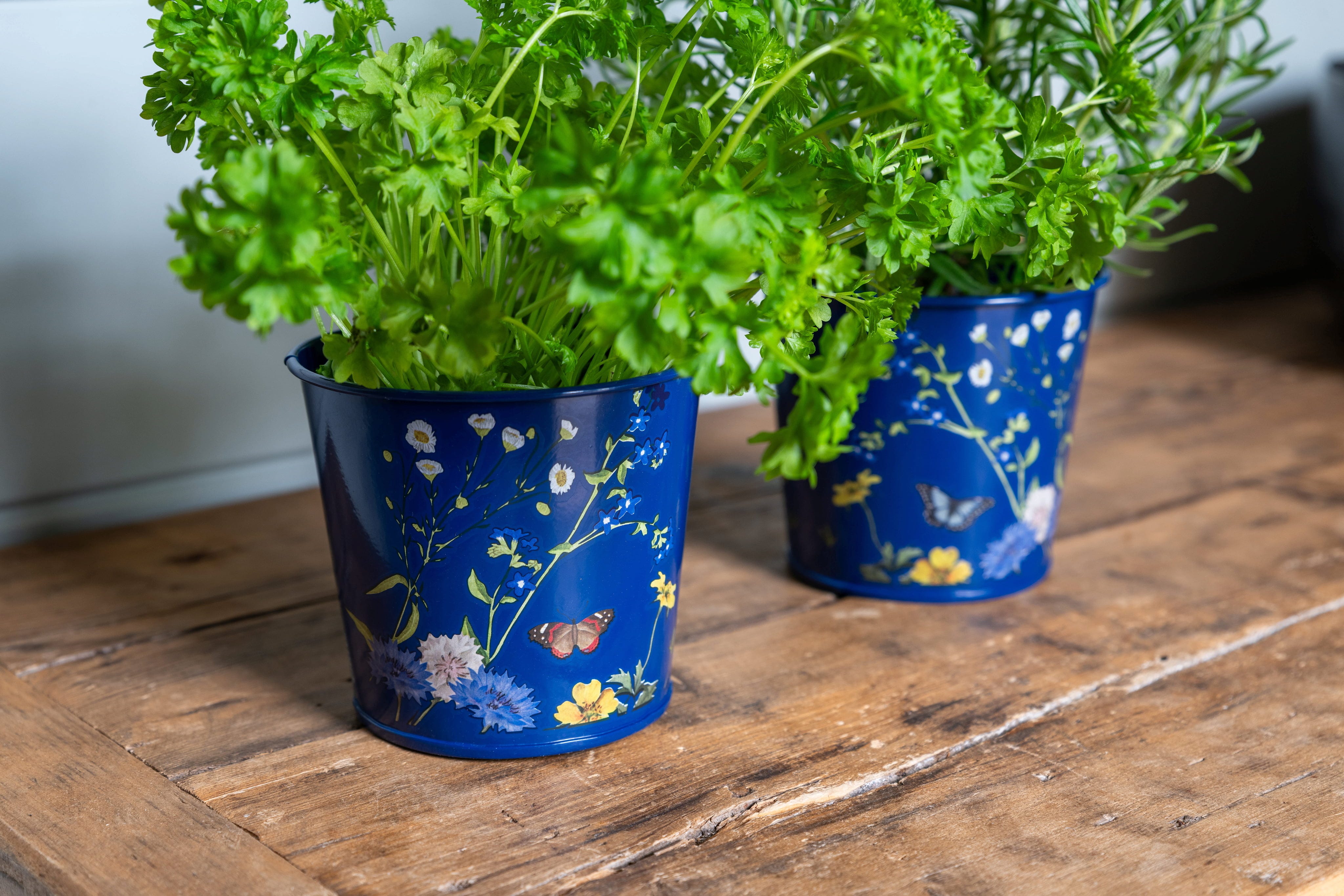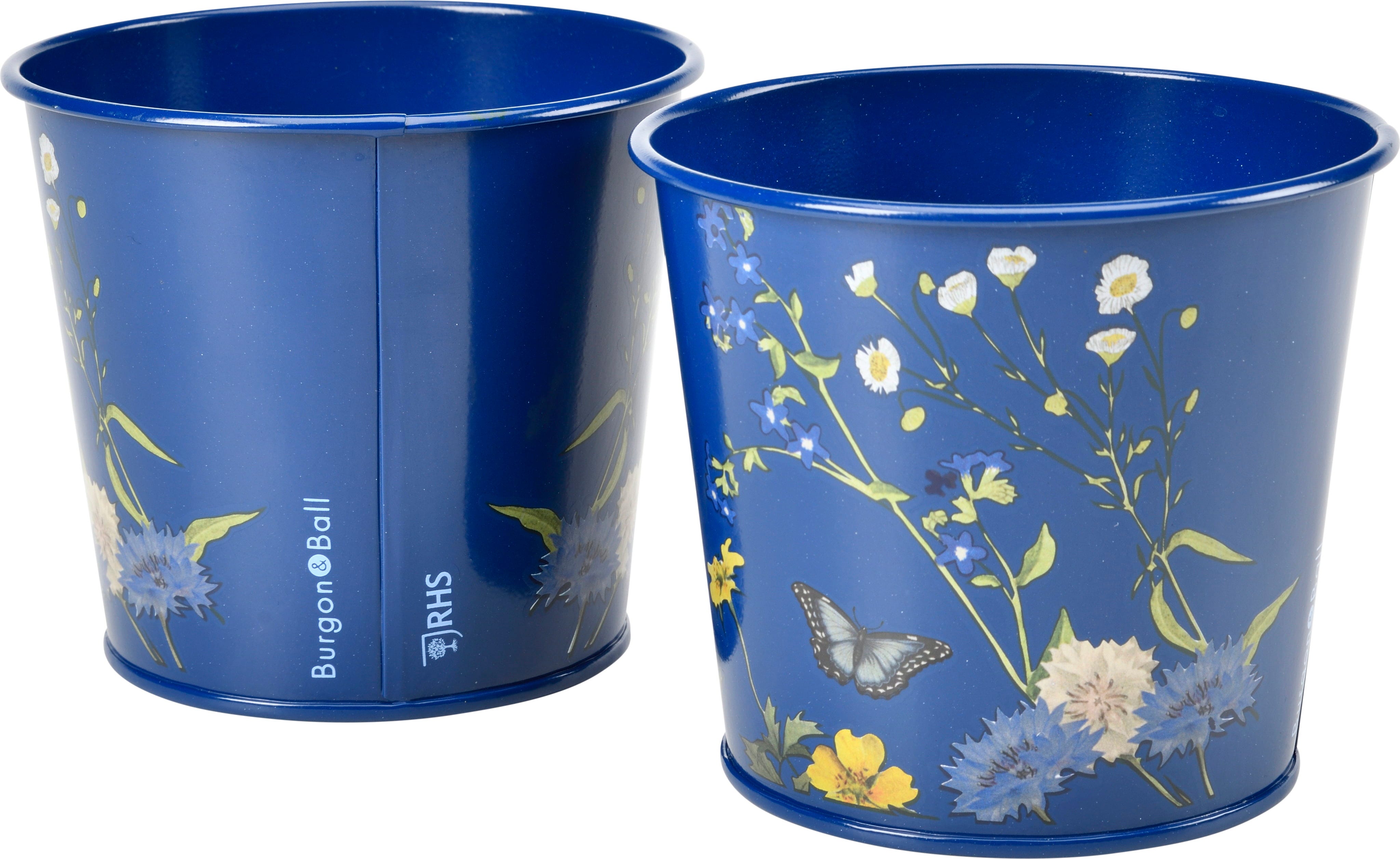 Haal met deze stijlvolle kruidenpotten van Burgon & Ball een stukje Britse natuur direct naar je vensterbank! Gemaakt van robuust, gepoedercoat staal, vallen ze op door het exclusieve „British Meadow“-ontwerp, dat tere wilde bloemen en vlinders tot leven laat komen op een chique, marineblauwe achtergrond.