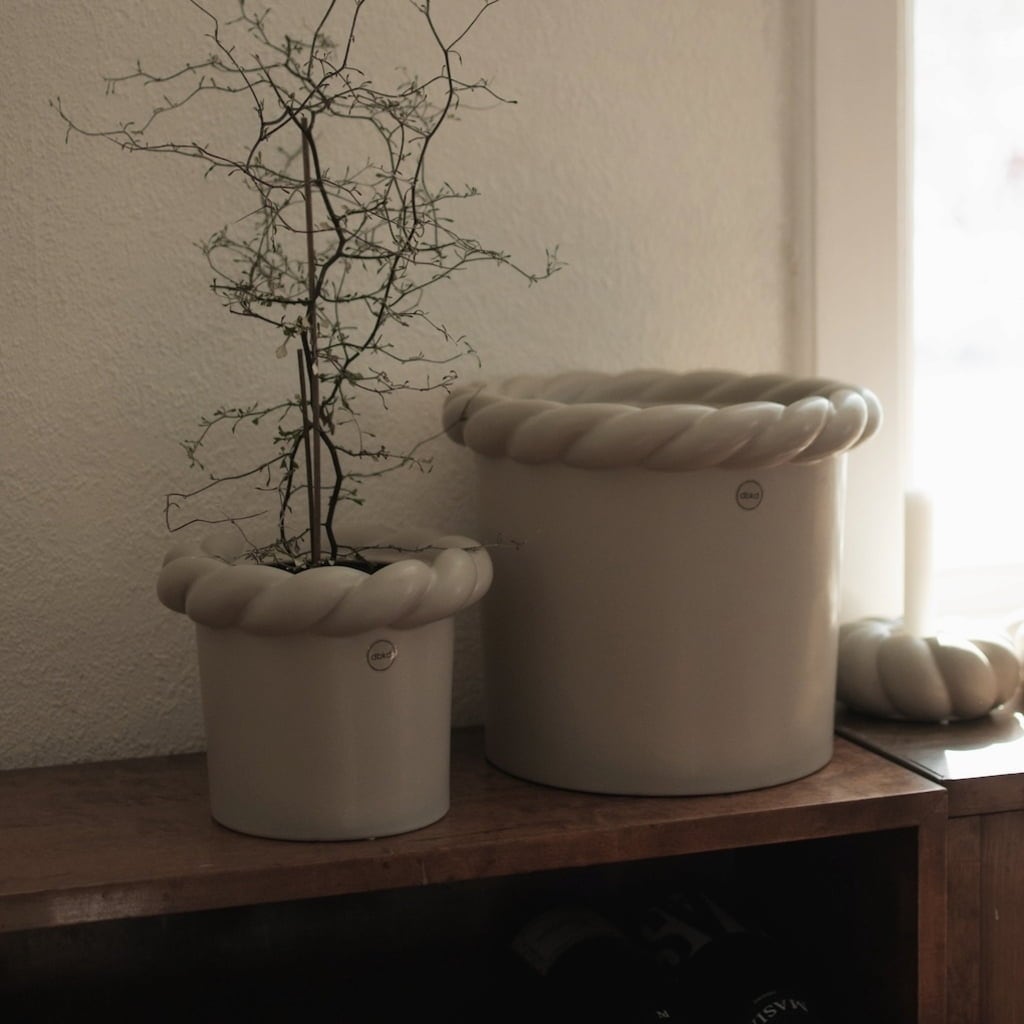 Deze elegante bloempot van keramiek combineert tijdloze esthetiek met speelse details. De licht gebogen rand geeft de pot een speciaal tintje dat stijlvol het decor vormt voor elk plantenarrangement. De pot is gemaakt van hoogwaardig keramiek en biedt niet alleen duurzame kwaliteit, maar ook een charmante presentatie voor je favoriete planten.