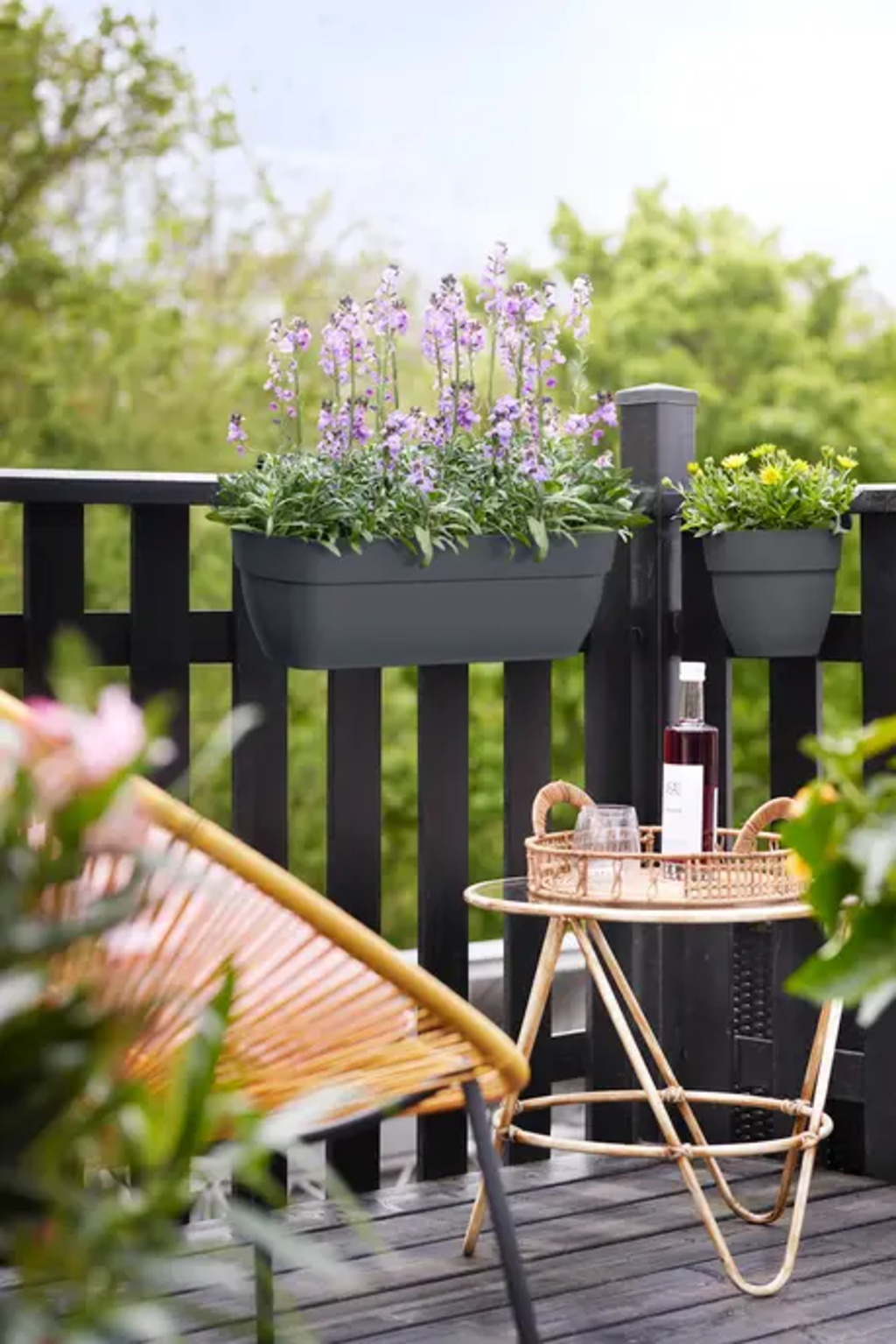 De elho vibia campana easy hanger XL brengt met gemak frisheid op je balkon. De lichte balkonbak kan stevig worden bevestigd aan balustrades tot 6,5 cm en biedt je planten alle ruimte. De platte achterkant zorgt voor stabiliteit, terwijl de geïntegreerde overlooppijpjes overtollig water betrouwbaar afvoeren. Weerbestendig, kleurvast en gemaakt van 100% gerecycled kunststof - duurzaam geproduceerd met windenergie.