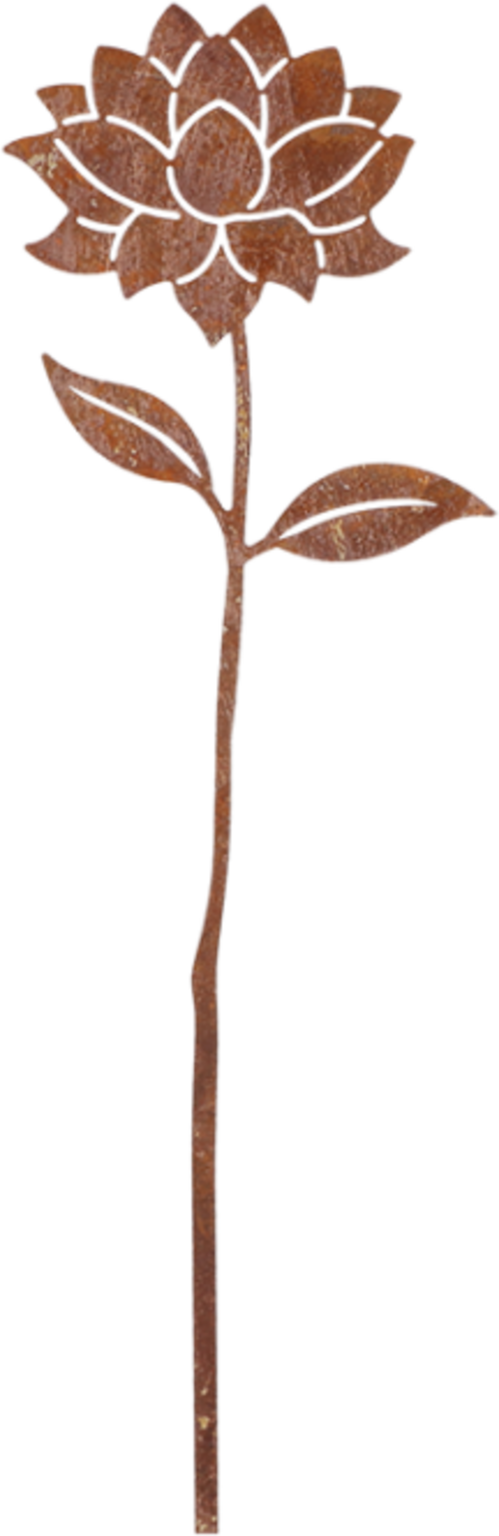 De lasergesneden Dahlia tuinpin brengt rustieke charme en natuurlijke elegantie in elke tuin. Met zijn roestige oppervlak krijgt hij na verloop van tijd een authentiek patina, waardoor hij een echte blikvanger wordt. Veelzijdig in gebruik - in het bloembed, op het terras of in een pot.