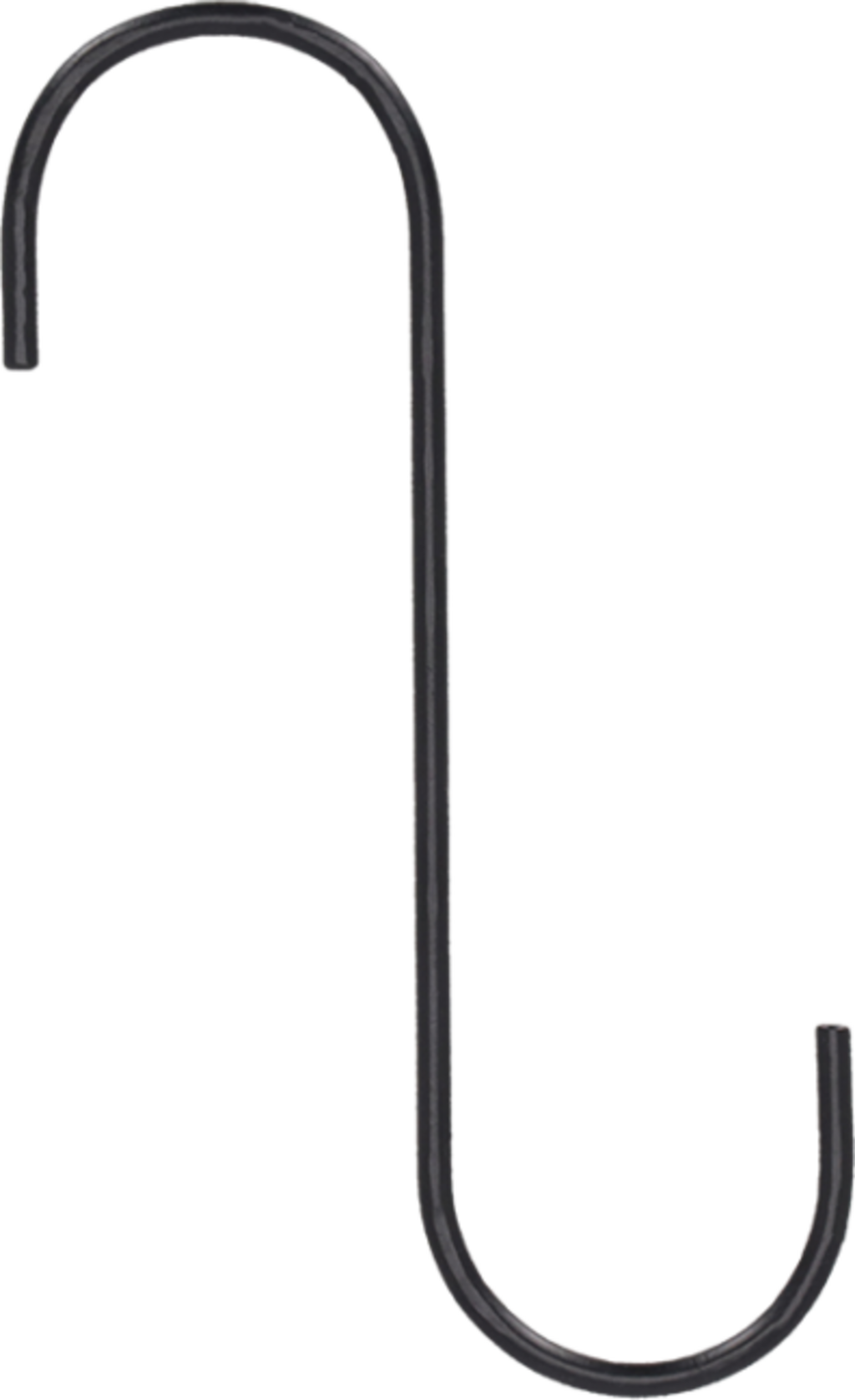 Deze robuuste S-haak kan flexibel worden gebruikt zonder boren of schroeven. De zwarte afwerking past perfect in moderne woonruimtes of vormt een stijlvol contrast met lichtgekleurde achtergronden.