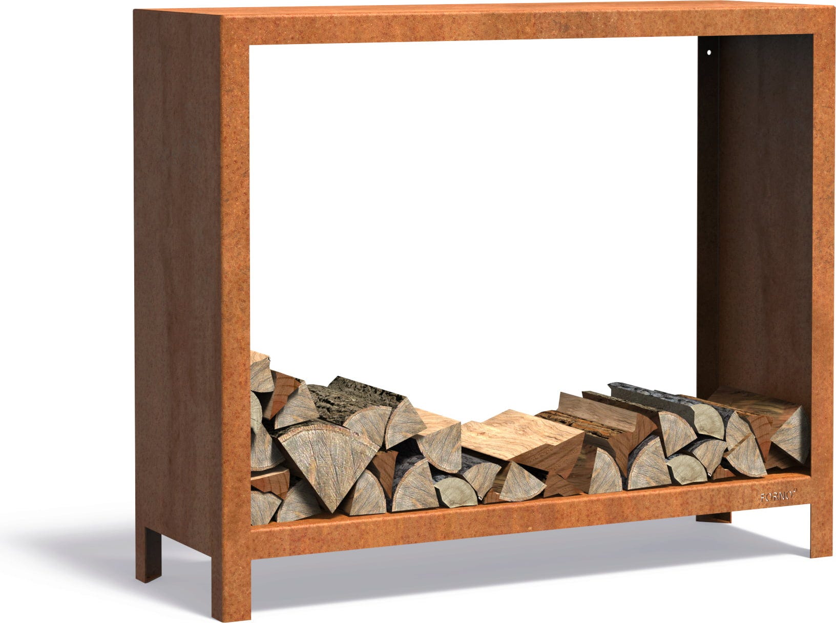 Als je een vuurplaats in de tuin hebt, moet je altijd genoeg brandhout op voorraad hebben. Gelukkig biedt de houtopslag van FORNO genoeg ruimte voor een goed gevulde voorraad. Het duurzame cortenstalen materiaal krijgt na verloop van tijd een kenmerkende roestige patina. De resulterende look kan worden gecombineerd in zowel moderne als rustieke stijlen. Gevuld met brandhout zorgt het voor pure gezelligheid.
