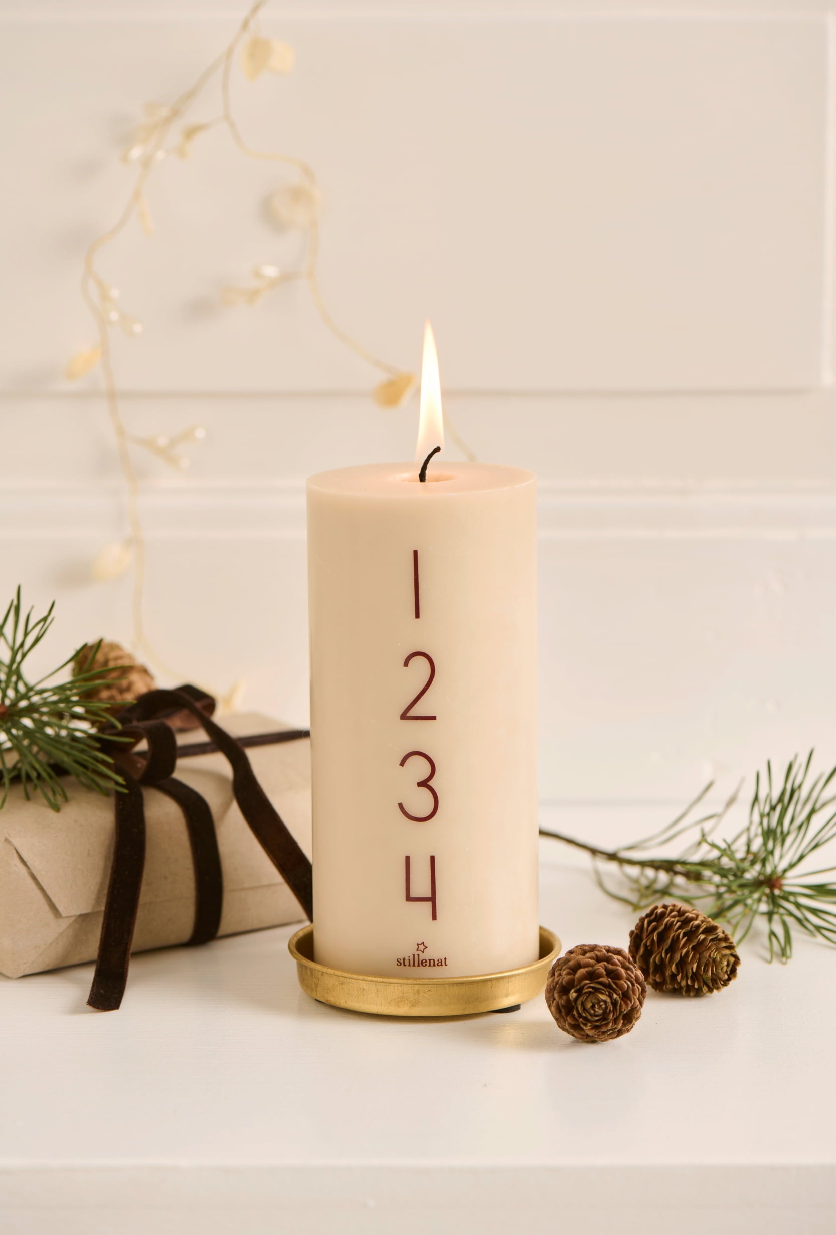 Deze kaars is een stijlvol alternatief voor de klassieke adventskrans en een geweldige manier om een sfeervolle ambiance te creëren in de aanloop naar Kerstmis.