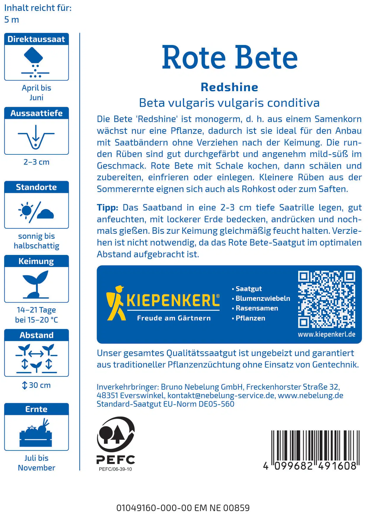 Kiepenkerl Rode Biet Redshine - Zaadlint