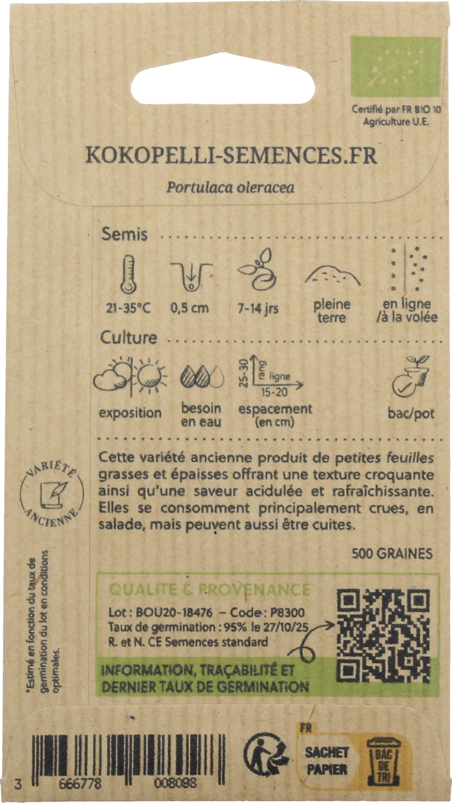 Kokopelli Biologische Gele Postelein, 500 Korrels