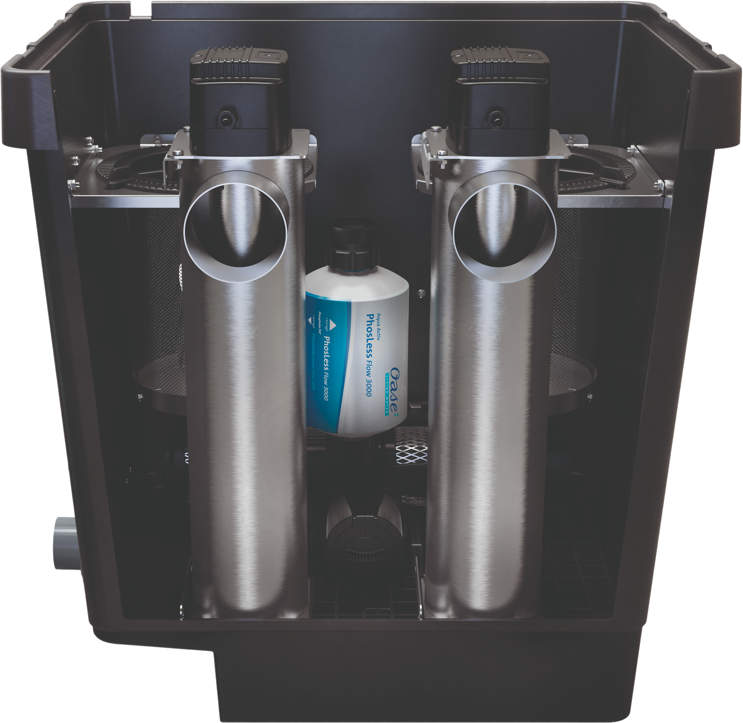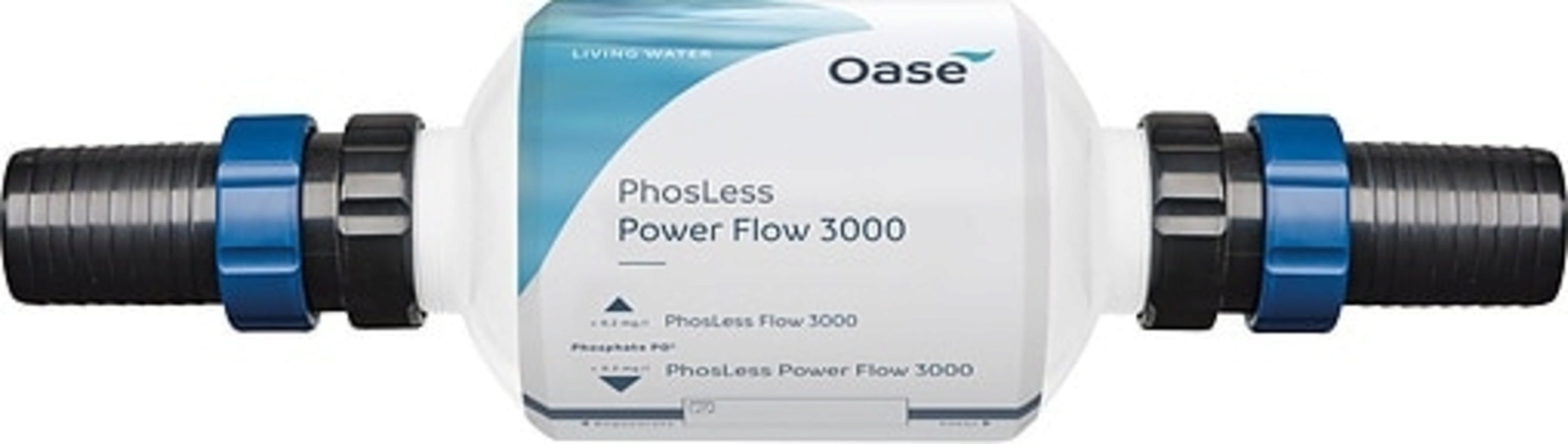 De zeer reactieve fosfaatbinder PhosLess Power Flow 3000 van Oase neemt in totaal tot 150 g fosfaat op. Zelfs bij lage concentraties van 0,035 mg/l, wat overeenkomt met de minimumwaarde voor algengroei, werkt het speciale granulaat snel en effectief.
