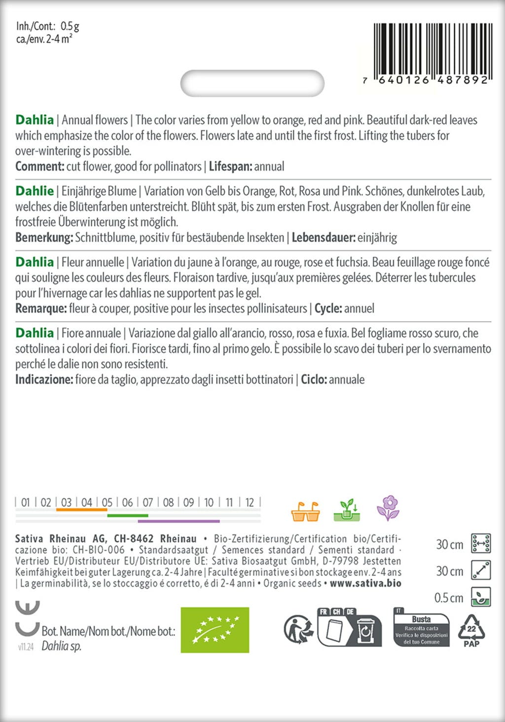 Sativa Biologische Eenjarige Bloem "Dahlie", 0,50 g