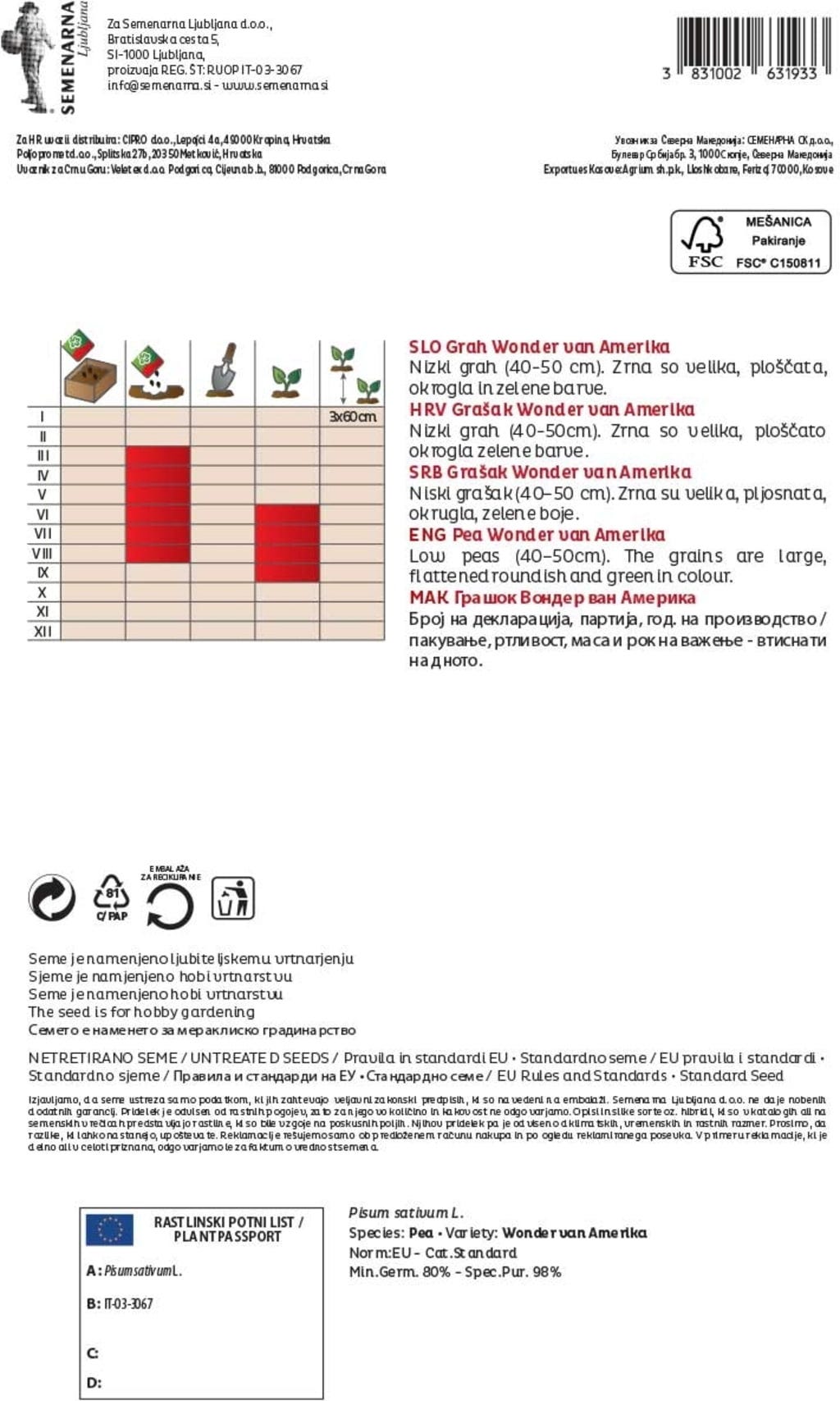 Semenarna Ljubljana Doperwtenzaden "Wonder van America", 100 g