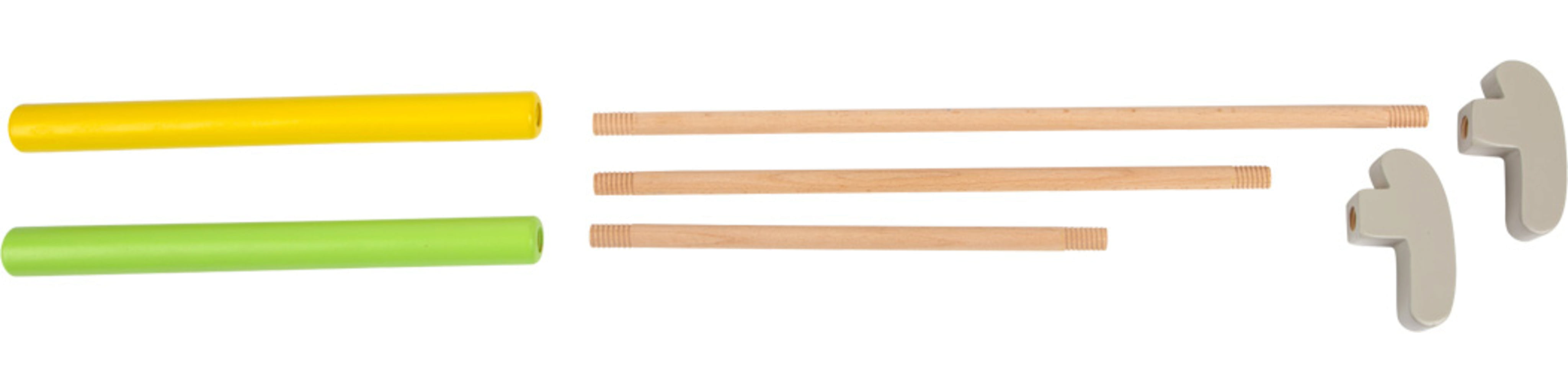 Met deze geweldige set breng je het populaire klassieke minigolfspel naar je eigen tuin. Met de schans, een wip, twee tunnels en verschillende houten blokken kun je een gevarieerd parcours bouwen dat golfers van alle leeftijden zal uitdagen. De zachte ballen zorgen voor de nodige veiligheid en met de clubs van verschillende lengtes kan het hele gezin meedoen.