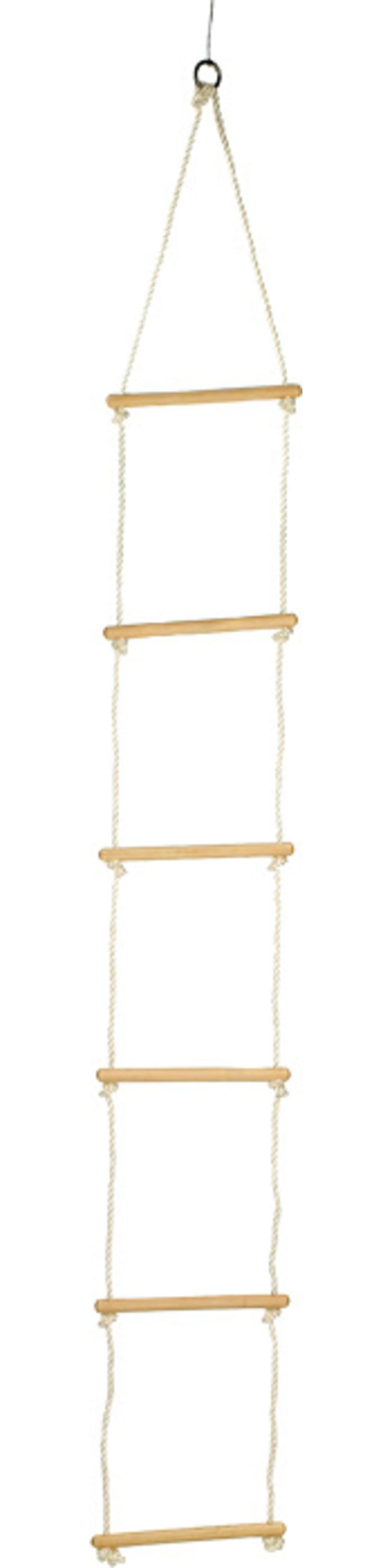 Een robuuste touwladder met houten sporten. Perfect om een extra attractie toe te voegen aan een boomhut of klimrek. Kleine piraten, boeven en acrobaten komen gegarandeerd aan hun trekken. Wie durft er helemaal naar boven te klimmen?